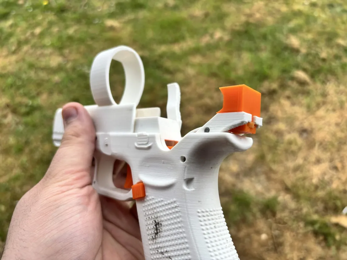 Kích thước chuẩn xác: Không giống như các mô hình kém chất lượng, khung Glock 17 Gen 5 này được mô phỏng với tỷ lệ chuẩn 1:1, giúp cầm nắm hoàn hảo và tương thích với các loại bao da tiêu chuẩn.