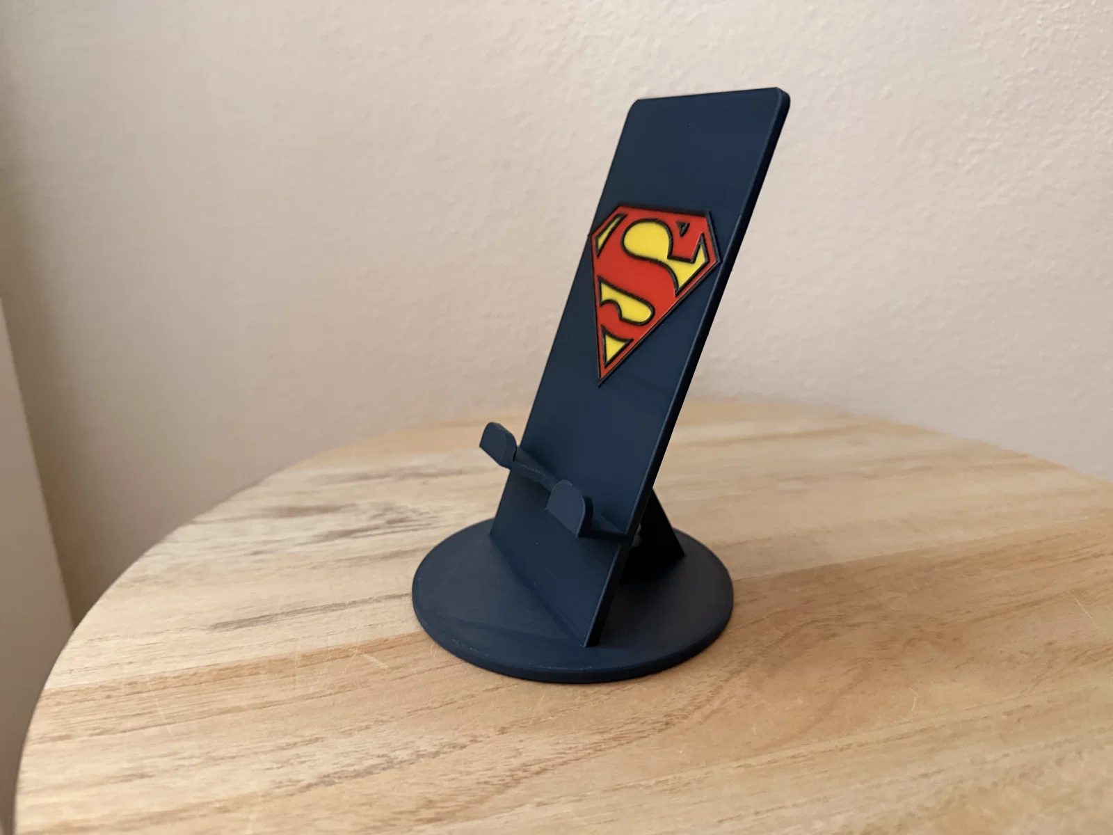 Mẫu đế giữ điện thoại chủ đề Superman cực chất. Sản phẩm được in với 4 màu bằng nhựa PLA trên máy Bambulab, hỗ trợ cắm sạc tiện lợi. Tải ngay để trải nghiệm!
