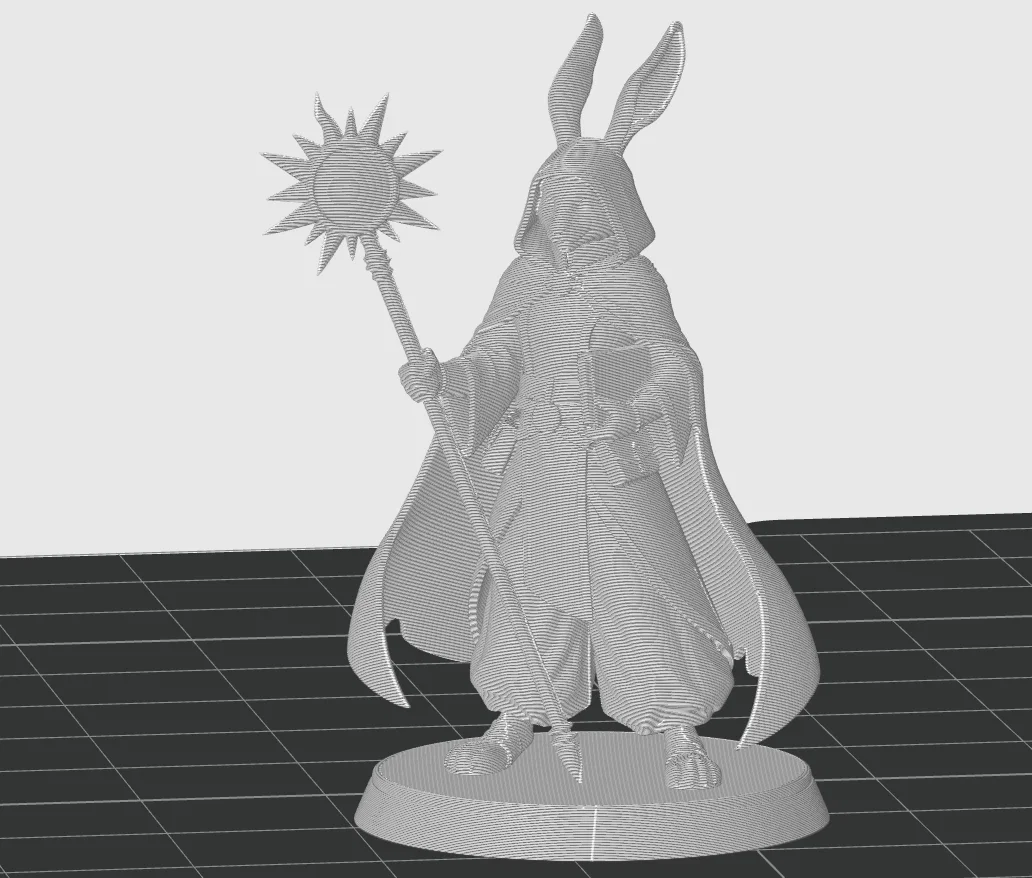 - Hỗ trợ in (Supports): Do có phần áo choàng và gậy phép vươn ra, bạn nên cân nhắc thiết lập supports ở các vị trí dưới cánh tay và gậy để đảm bảo mô hình không bị lỗi khi in.