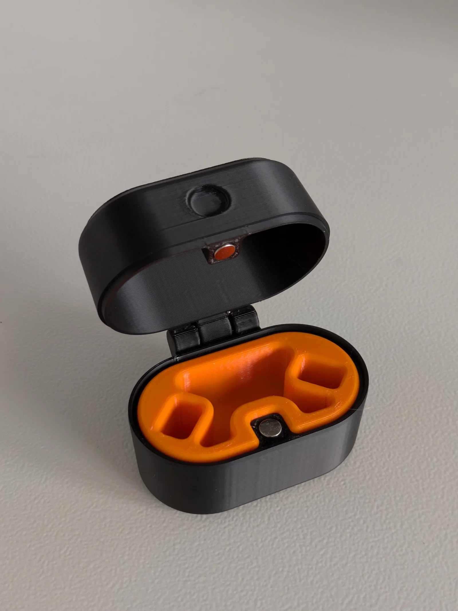 Phần vỏ chính được thiết kế dạng vỏ sò in liền khối (print-in-place), có sẵn hai vị trí để gắn nam châm 6x3mm giúp đóng hộp chắc chắn hơn.
