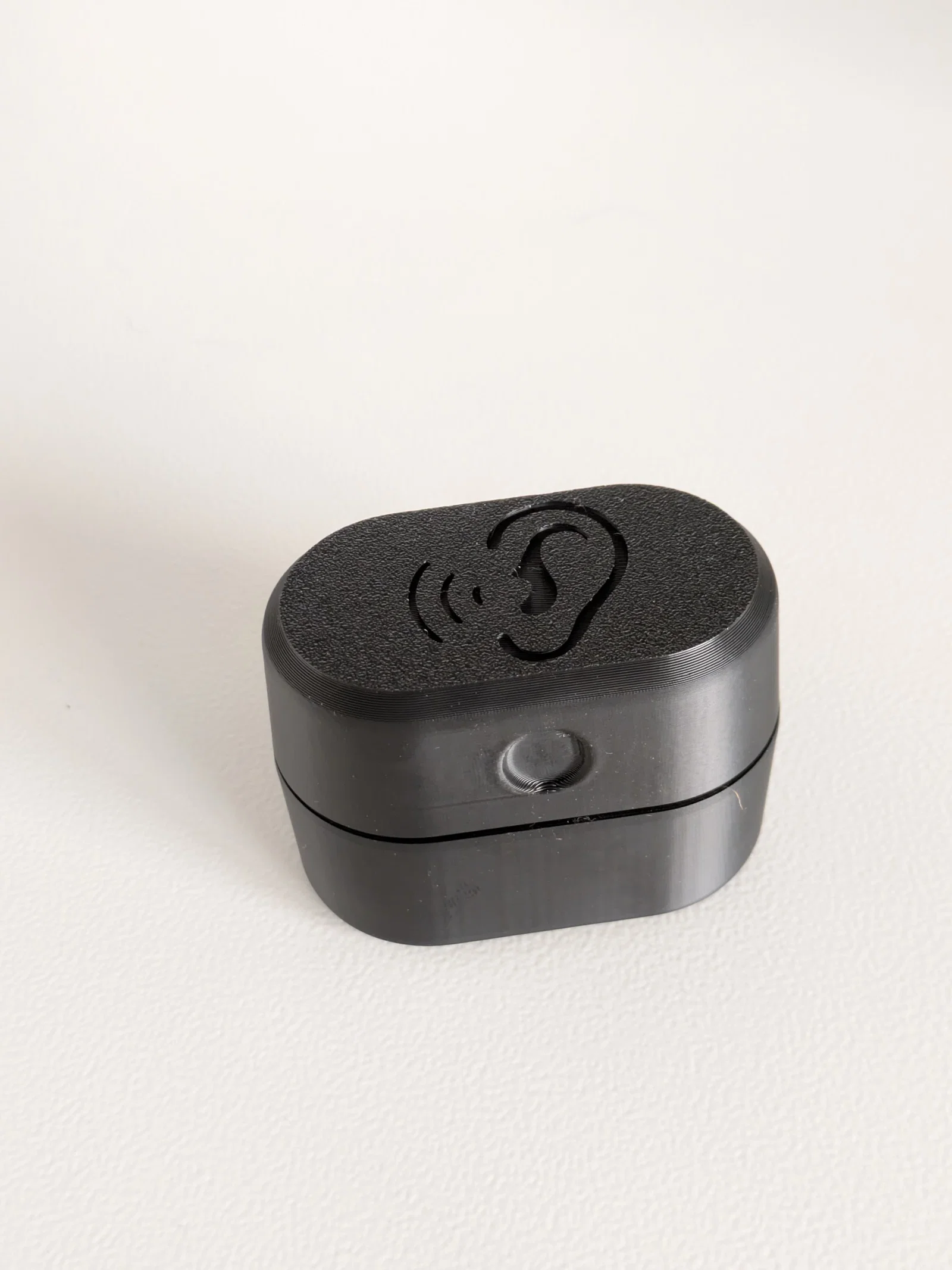 Đây là mẫu hộp đựng cho máy trợ thính Sennheiser Sonite R. Chiếc Sennheiser Sonite R của mình đi kèm với bộ sạc kiêm hộp đựng, nhưng mình muốn có một chiếc hộp riêng để mang theo khi không sử dụng, ví dụ như lúc đi bơi hoặc khi chạy xe máy.