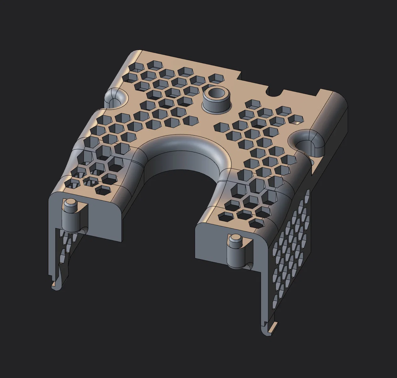 • Hỗ trợ khi in (Supports): Bạn bắt buộc phải bật chế độ hỗ trợ (supports) để in phần nắp này. Tuy nhiên, cần lưu ý cấu hình để hỗ trợ không bám vào các lỗ lục giác, nếu không sẽ rất khó làm sạch và gây mất thẩm mỹ.