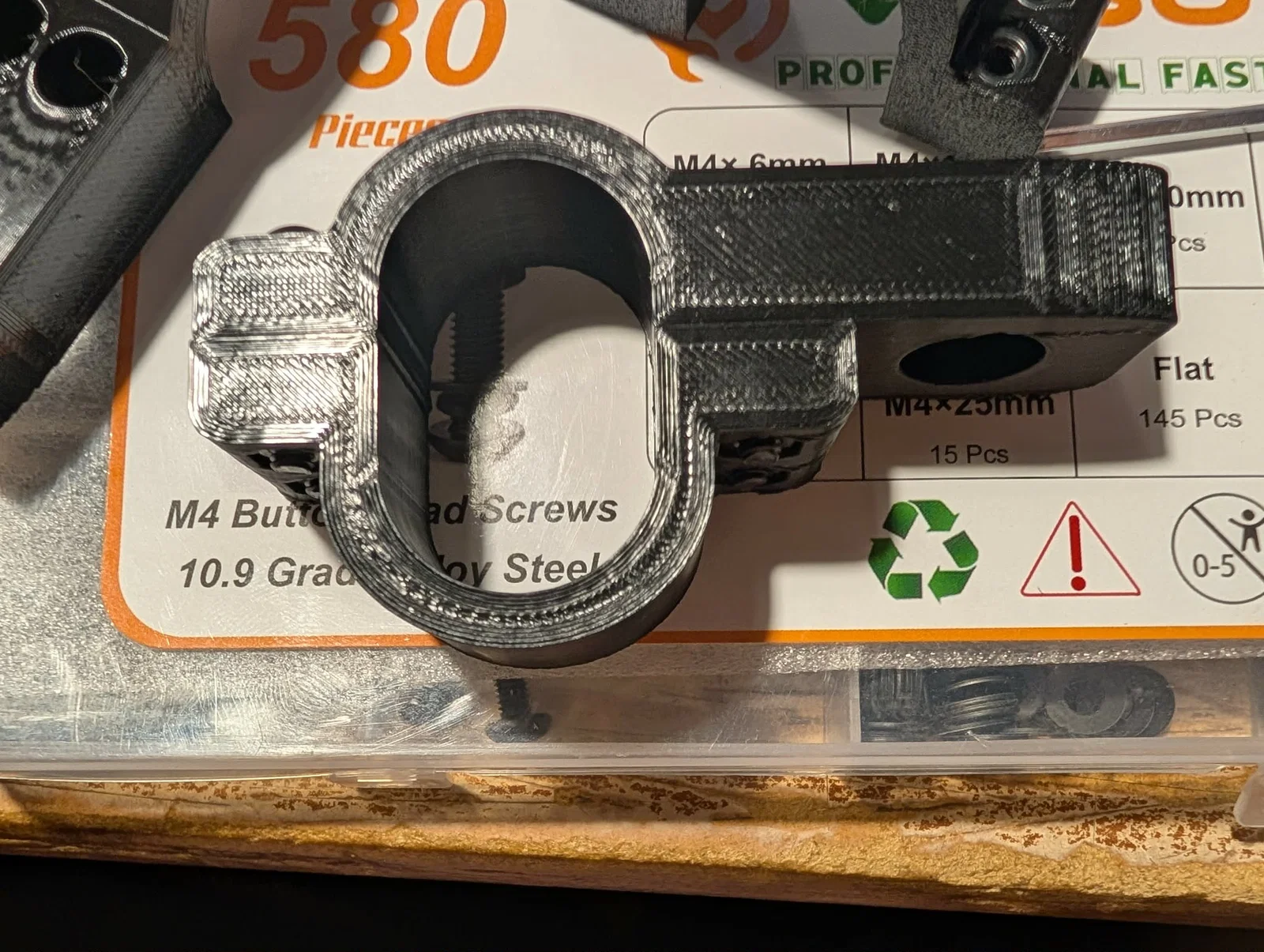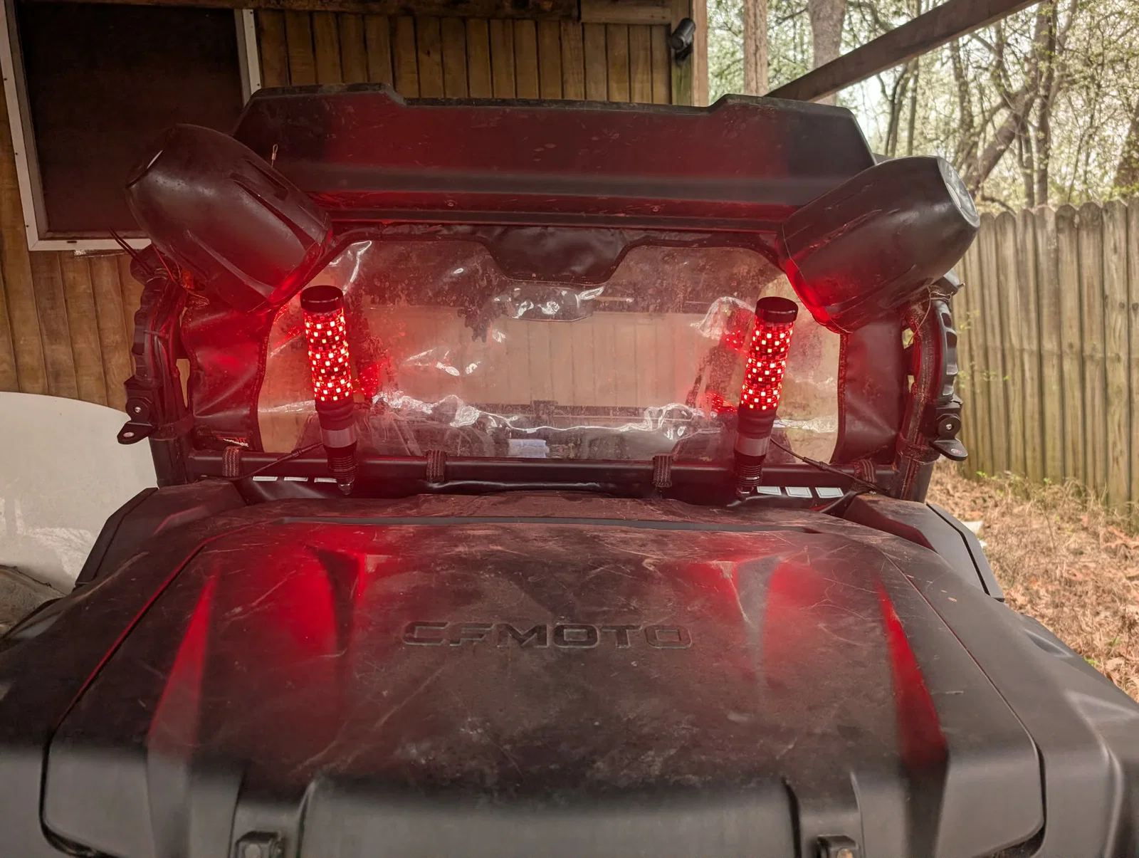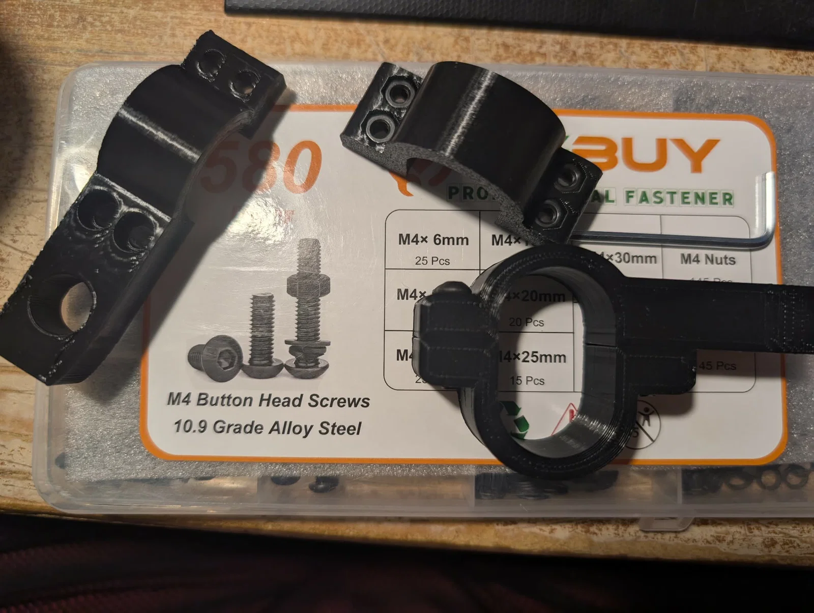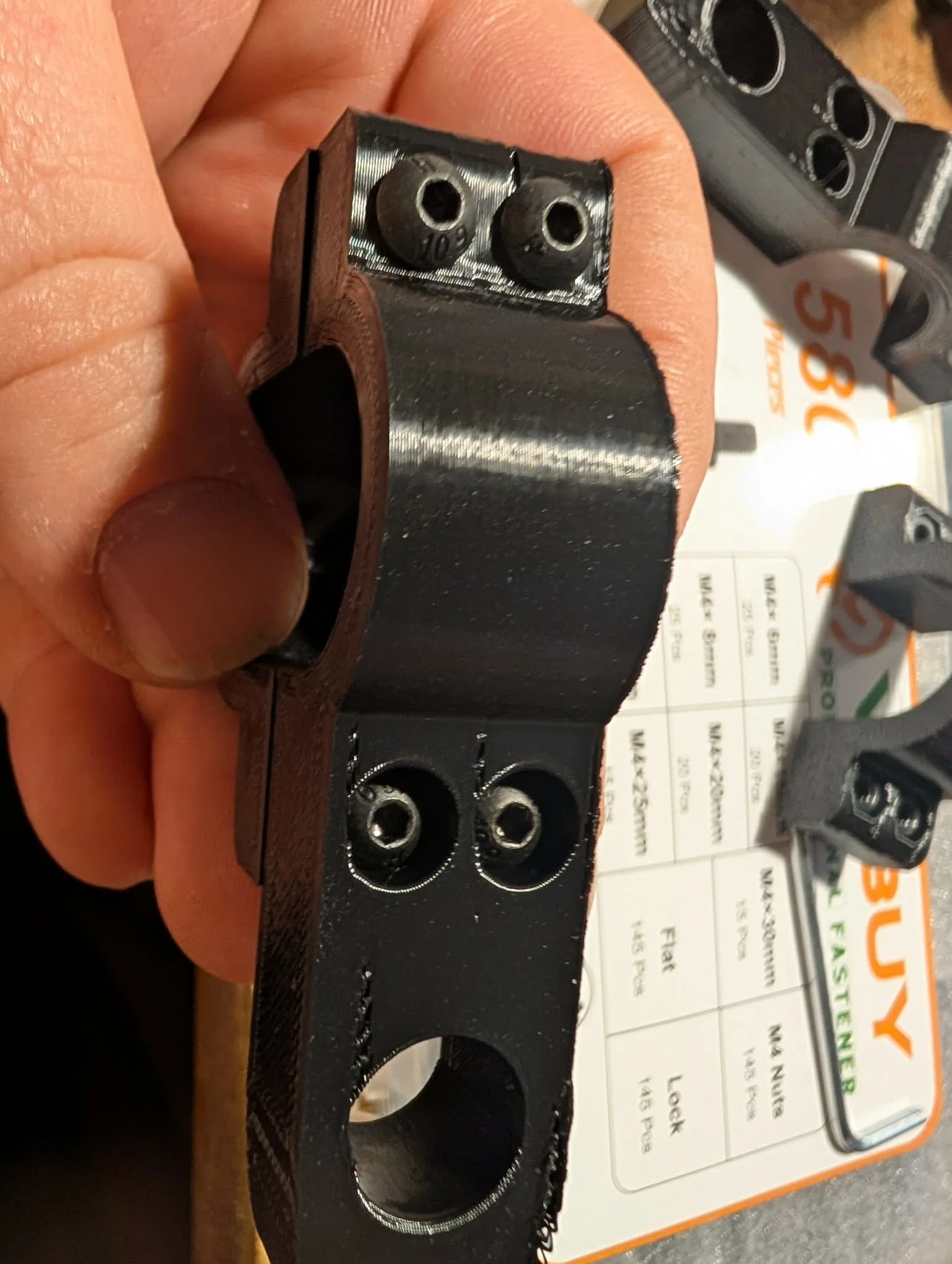 Tôi đã lắp mấy cái này trên chiếc CF Moto Gen2 ZForce 950 Sport đời 2024 của mình. Tôi muốn dời mấy cái đèn LED whip trên xe SXS vào trong hơn để tránh bị bùn đất bám vào. Kể từ lúc lắp cách đây 2 tháng, chúng vẫn hoạt động rất tốt và cực kỳ chắc chắn. Tôi in bằng nhựa PETG, thiết lập 4 tường và 50% infill. Mỗi bên dùng 4 con ốc M4 20mm, tôi dùng kềm để ép chặt mấy con tán vào phần đế bên dưới.