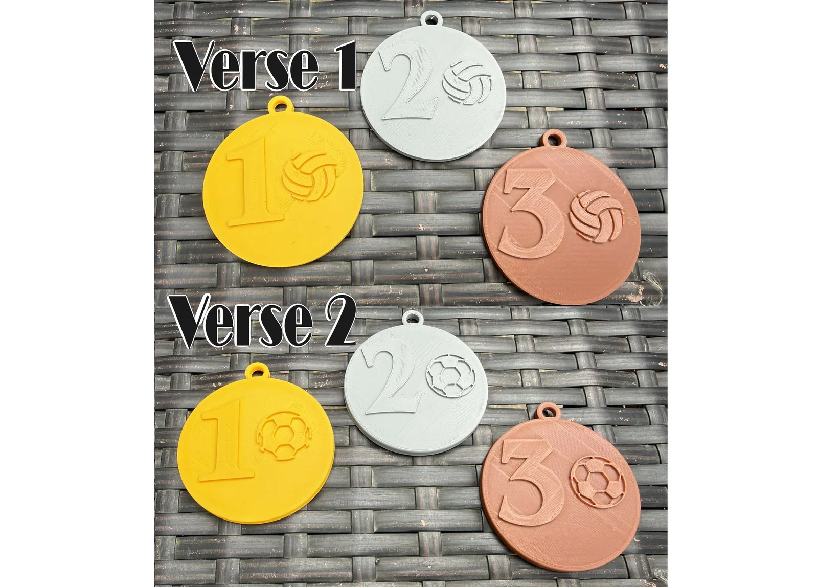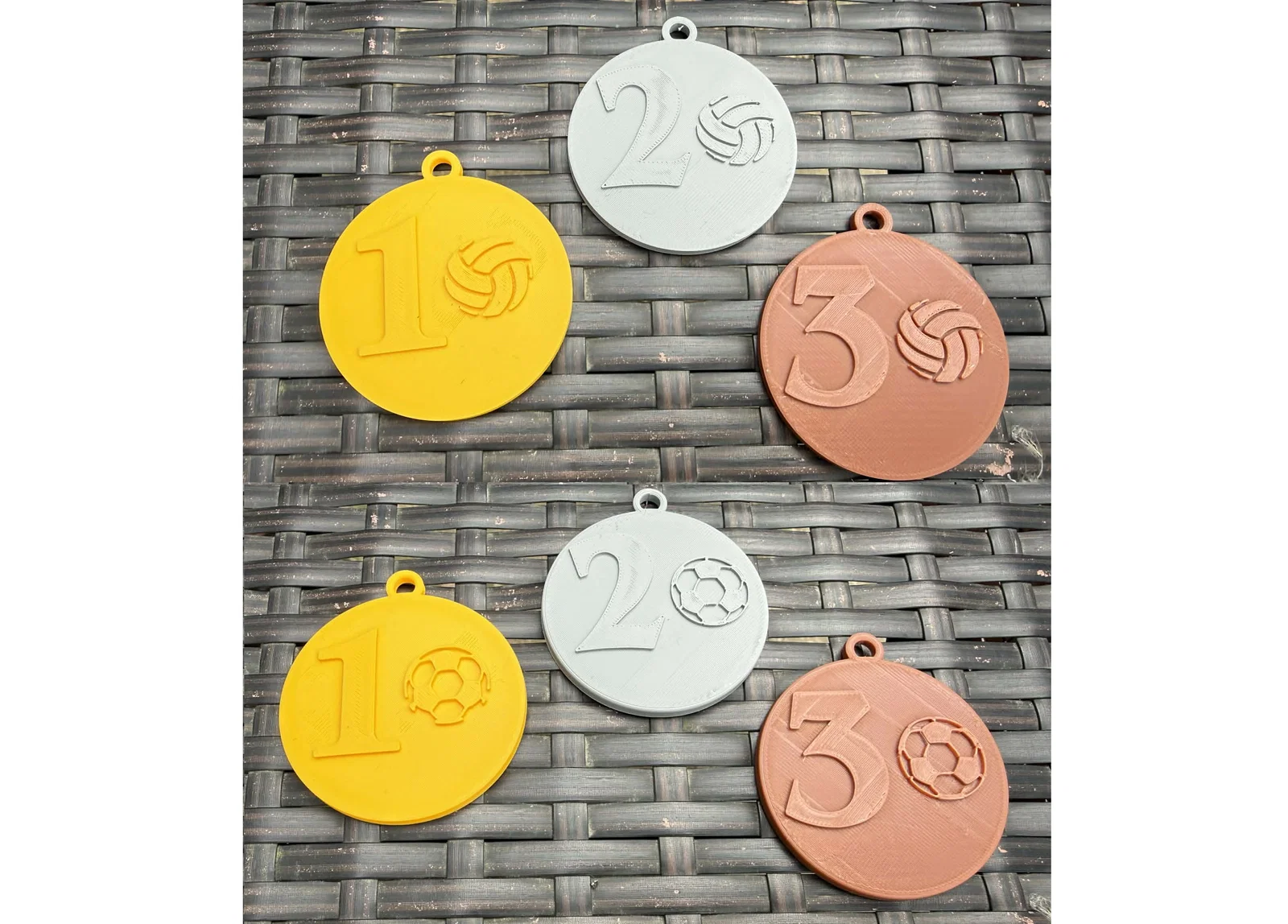 Bộ huy chương thiết kế đẹp mắt dành tặng cho các cầu thủ bóng đá và bóng chuyền xuất sắc nhất. File in tối ưu, không cần support, phù hợp cho mọi giải đấu phong trào. Tải về và in ngay với chất liệu PLA hoặc PETG nhé!