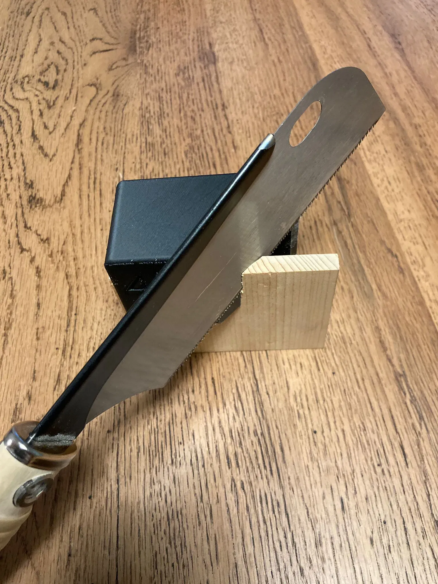 Bộ jig cưa này được thiết kế để cắt góc 45 độ. Một con vít giữ cho công cụ của bạn gắn chặt vào bảng. Cần hai nam châm, tôi đã làm một mẫu cho nam châm 12mm x 3mm và cái còn lại là cho nam châm 10mm x 2mm. Nó chỉ hoạt động với cưa Nhật Bản hoặc với lưỡi cưa có răng thẳng.