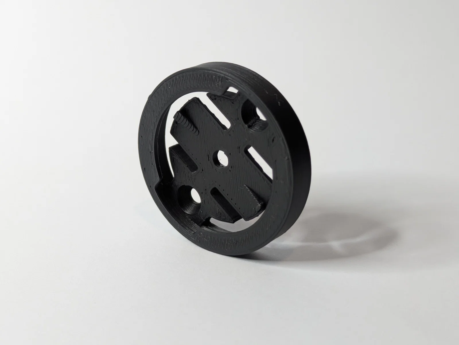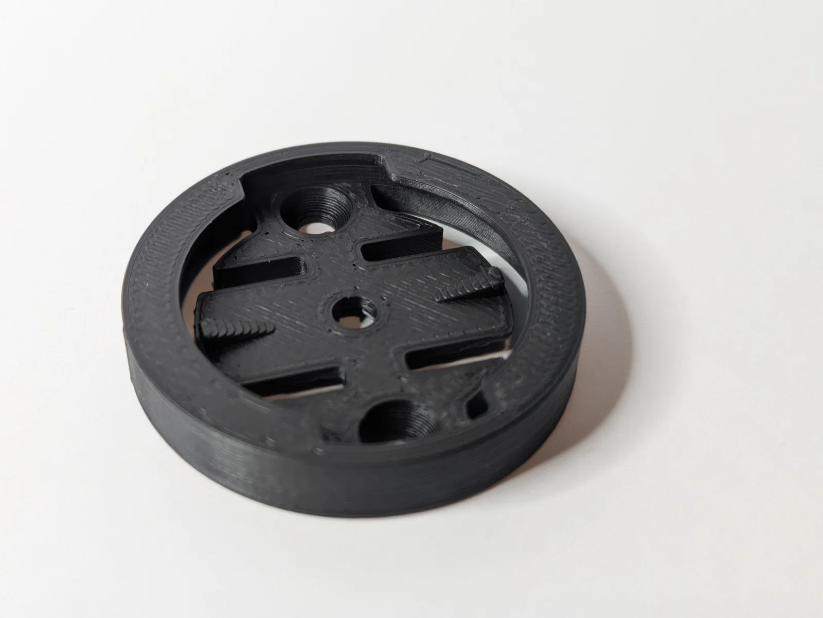 Phần khó nhất chính là giá đỡ máy vì dung sai rất nhỏ, tôi đã phải in thử nhiều lần để đảm bảo khớp nối tháo lắp mượt mà với độ rít vừa phải. Phần ngàm gắn ghi-đông thì đơn giản, bạn có thể tự làm dễ dàng. Khoảng cách lỗ để gắn giá đỡ đồng hồ vào phần thân là 24mm.