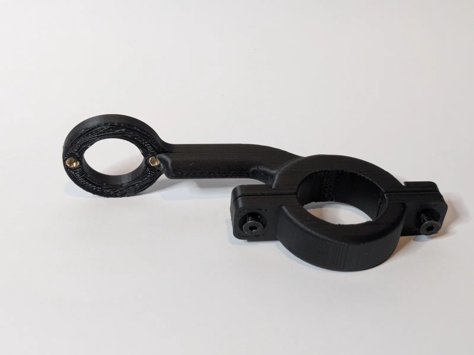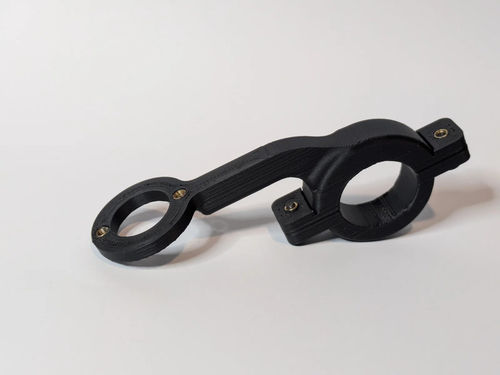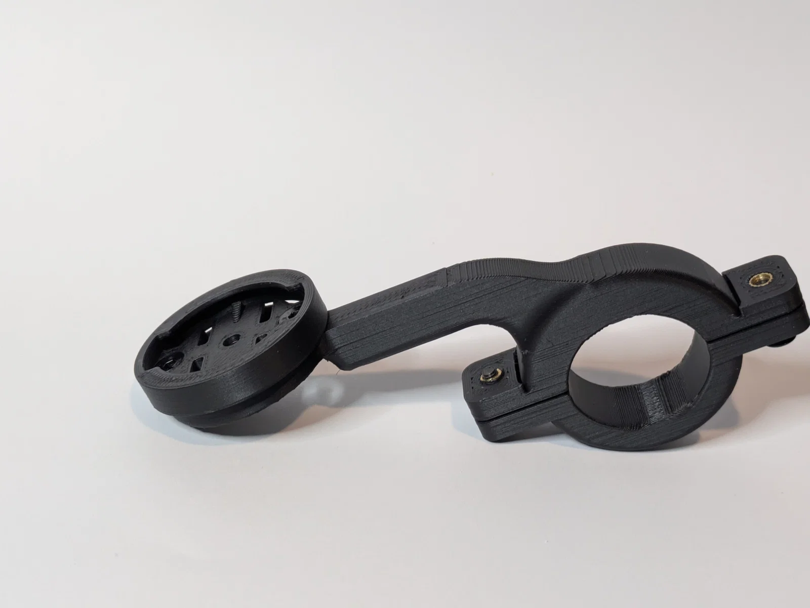 Để lắp ráp, bạn cần sử dụng bốn ốc cấy (threaded inserts) loại 3mm: hai cái để nối giá đỡ đồng hồ vào phần thân, và hai cái để nối phần thân vào ngàm kẹp. Bạn cũng sẽ cần thêm bốn ốc vít đầu bằng Ø3.
