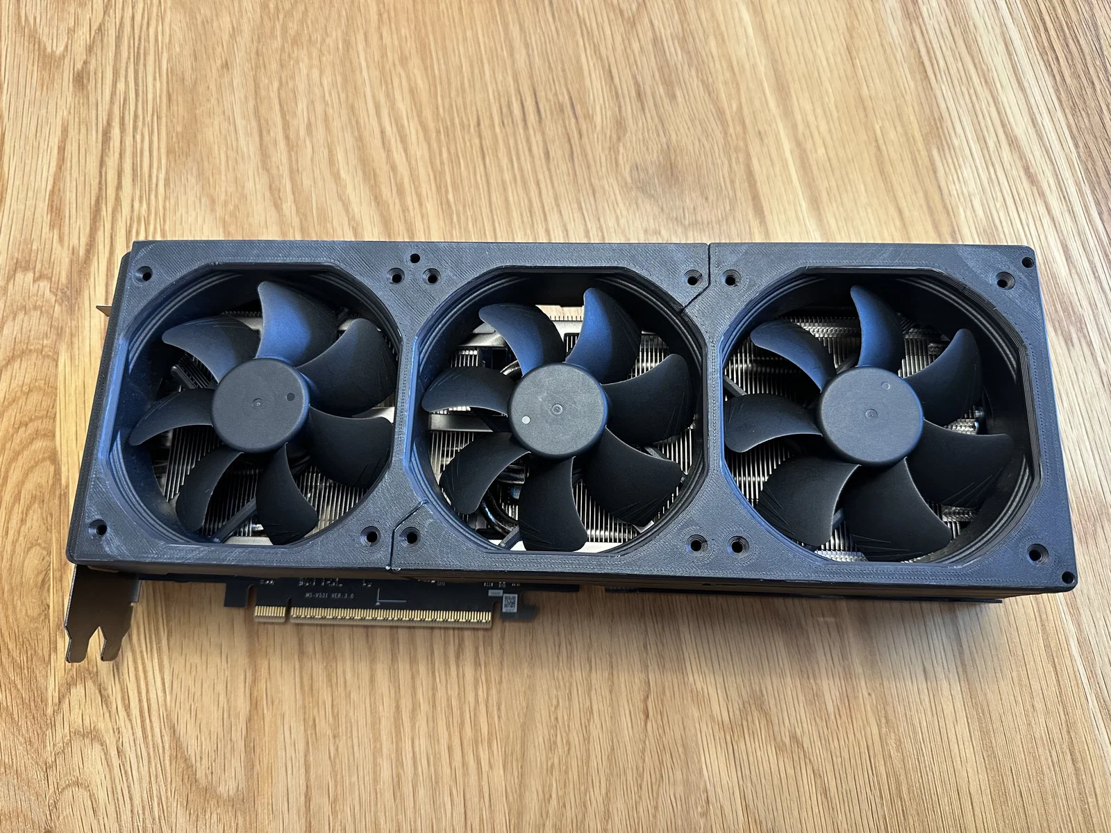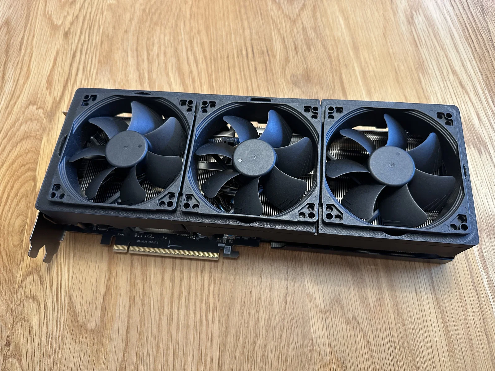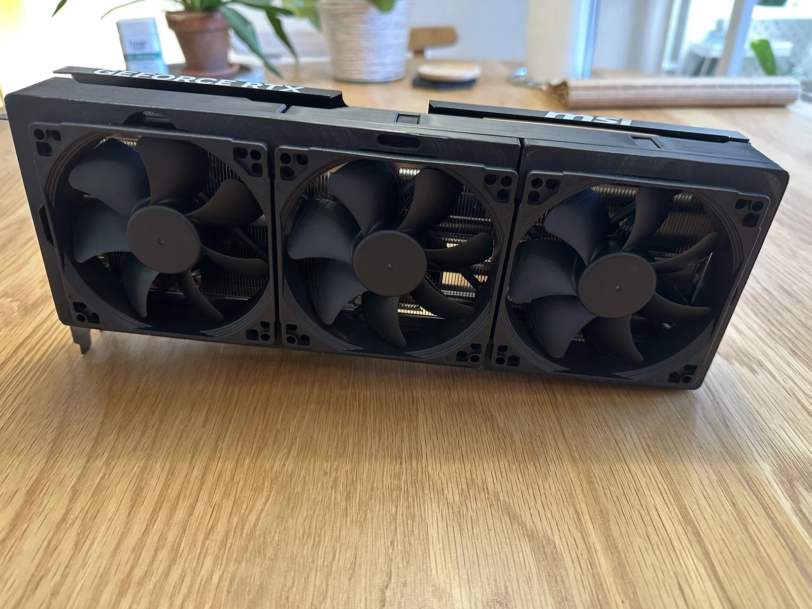 Mô hình này cho phép bạn thay thế và lắp 3 quạt Noctua NF-A9 (92 mm) dày 25 mm vào card đồ họa MSI RTX 5070 ti Ventus 3x OC, giúp giảm độ ồn đáng kể mà vẫn giữ nguyên hoặc cải thiện hiệu năng tản nhiệt. Thiết kế này có thể vừa với các dòng MSI RTX 5080 Ventus 3x OC và RTX 5070 Ventus 3x OC, dù mình chưa xác nhận vì chỉ có bản 5070 ti trên tay (nhìn ảnh thì chúng rất giống nhau). Mô hình tận dụng các ốc vít zin cùng một số linh kiện bổ sung để cố định quạt mà không cần can thiệp vĩnh viễn vào card (bạn hoàn toàn có thể lắp lại đồ zin nếu muốn bán lại sau này). Bên cạnh đó, mình đã tích hợp sẵn rãnh đi dây (kèm điểm buộc dây rút) giúp tổng thể trông gọn gàng và tinh tế.