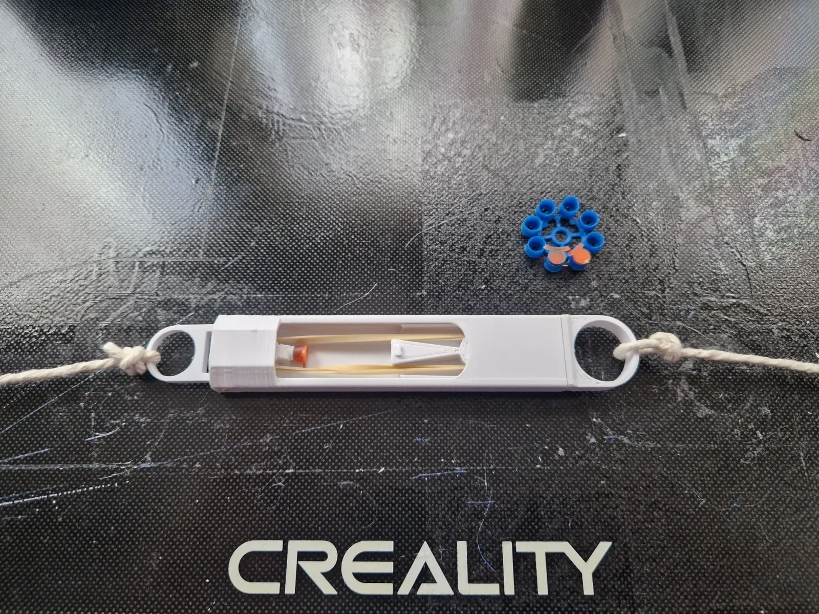 nếu việc kéo chốt ra quá cứng cho nhu cầu của bạn, bạn có thể làm cho nó dễ hơn bằng cách sử dụng một dây thun yếu hơn, miễn là nó vẫn đủ mạnh để kích hoạt nắp.