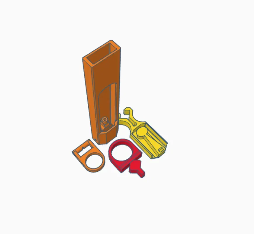 khi đã lắp ráp với dây cao su ở vị trí, búa màu vàng sẽ muốn kéo xuống để tiếp xúc với nơi nắp bật đi vào. hãy chắc chắn rằng điều này trượt tự do, bạn có thể muốn làm cho nó di chuyển qua lại để dễ dàng hơn hoặc thêm một chút dầu silicone nhưng điều này có thể không cần thiết.