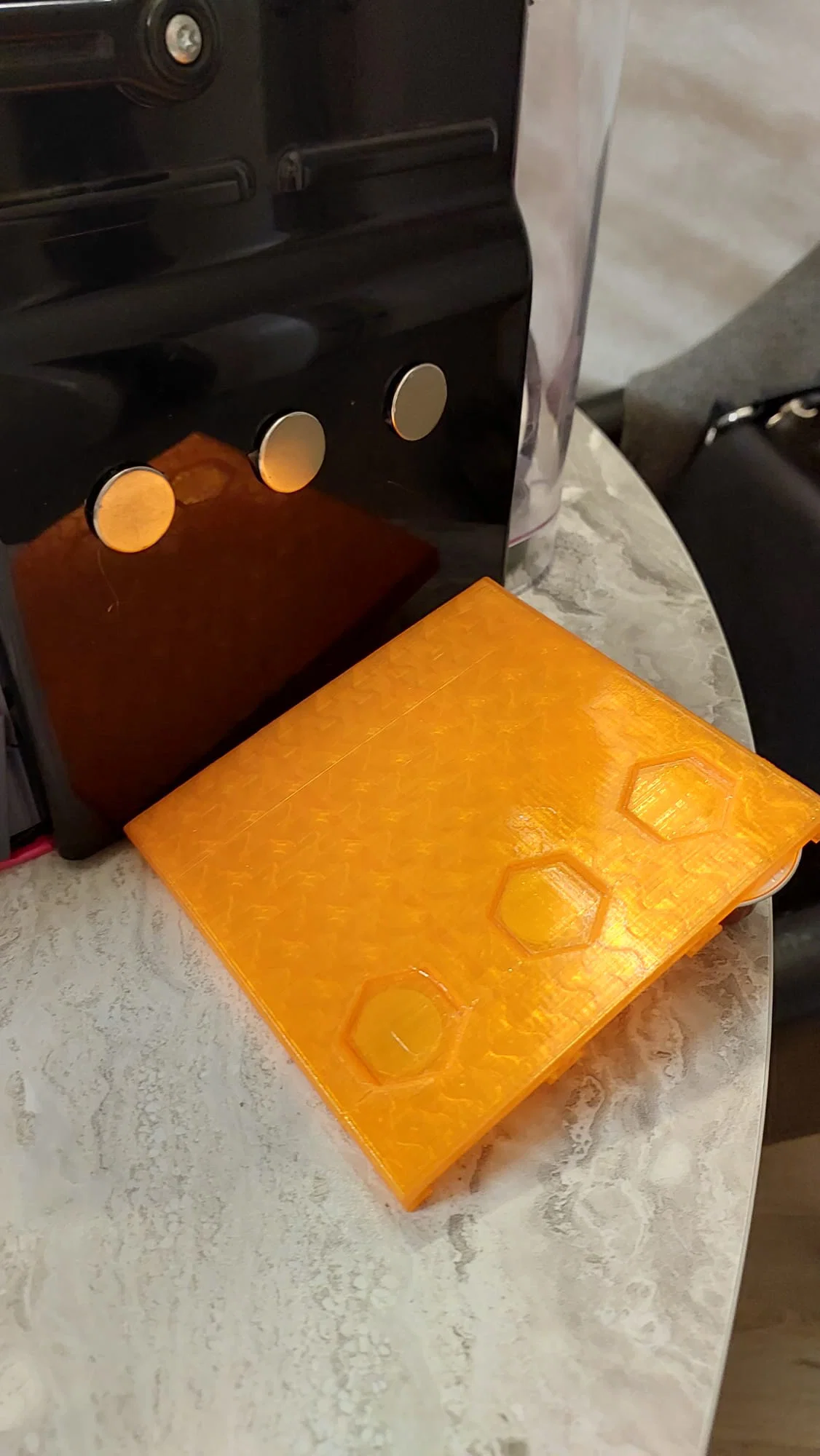 Nếu bạn dùng nam châm, hãy tạm dừng in ở lớp thứ 508 (hoặc tùy chỉnh tùy theo thiết lập của bạn) để đặt vào mỗi 'hộp' một viên nam châm tròn có độ dày 1.6mm và đường kính từ 19.5mm đến 20mm.