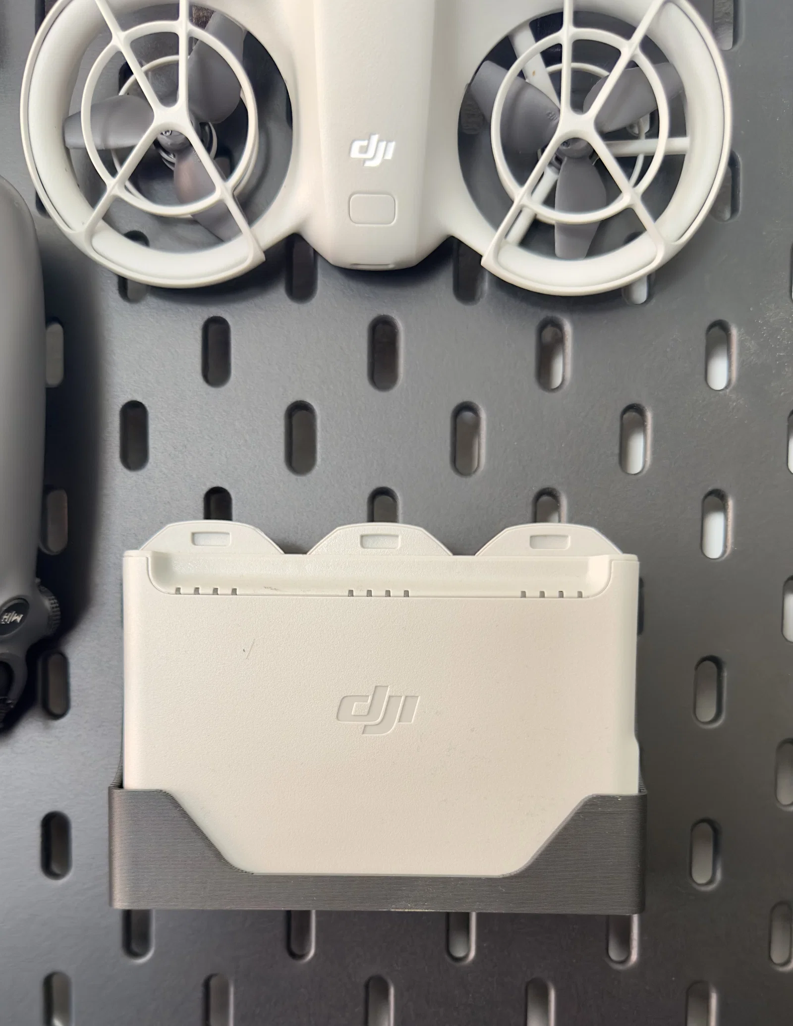 Giá treo hộp pin DJI Neo trên bảng SKADIS - Giải pháp lưu trữ gọn gàng