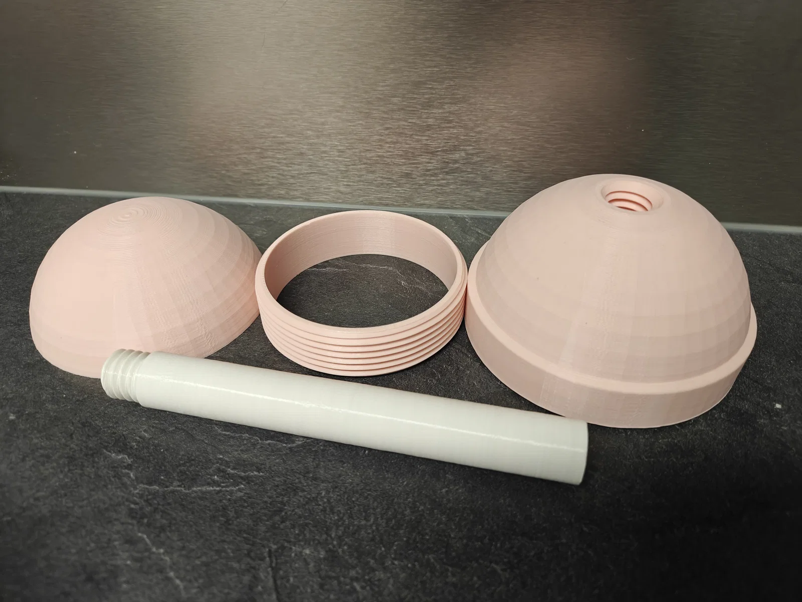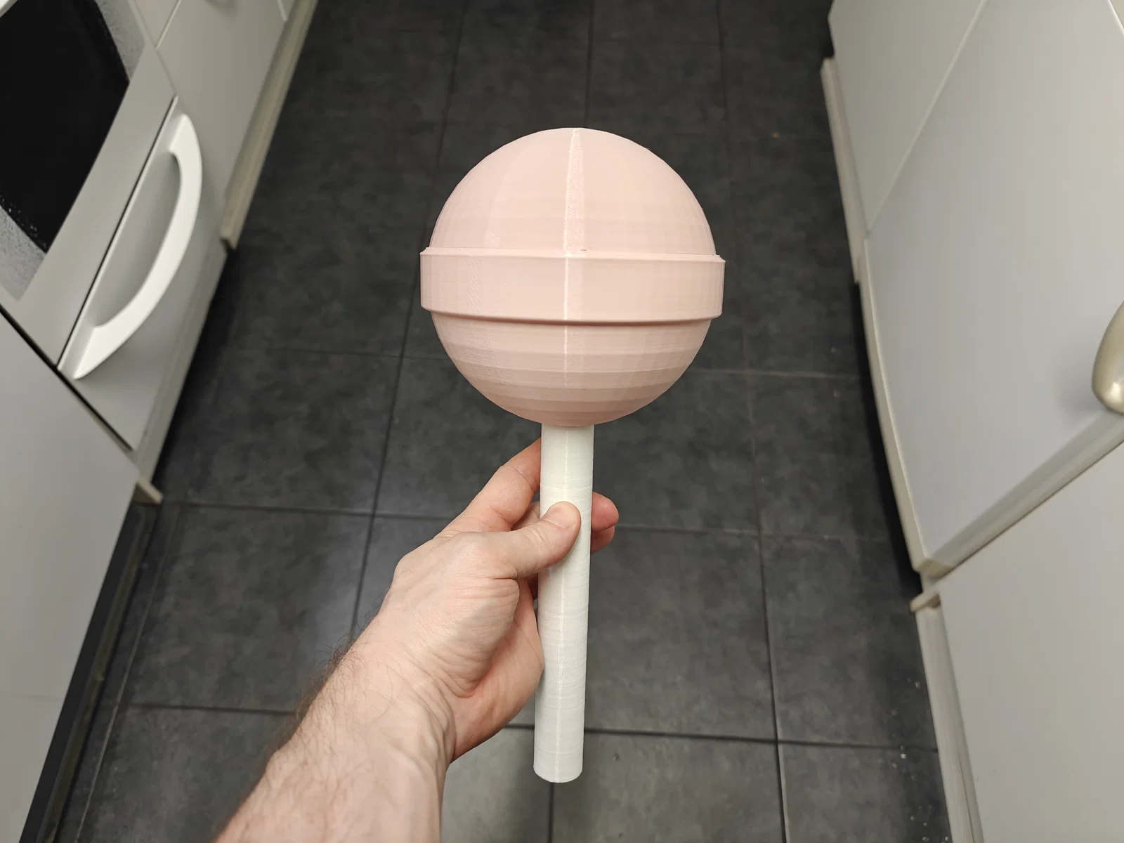 Tui cảm thấy cần một cây kẹo mút khổng lồ làm đạo cụ, nhưng lại không muốn dùng keo dán. Thế nên tui đã chỉnh sửa lại các chi tiết với khớp vặn ren giúp việc lắp ráp trở nên cực kỳ đơn giản. Nguồn OpenSCAD ở đây: https://github.com/spegelius/3DModels/tree/master/Giant_Lollipop_remix