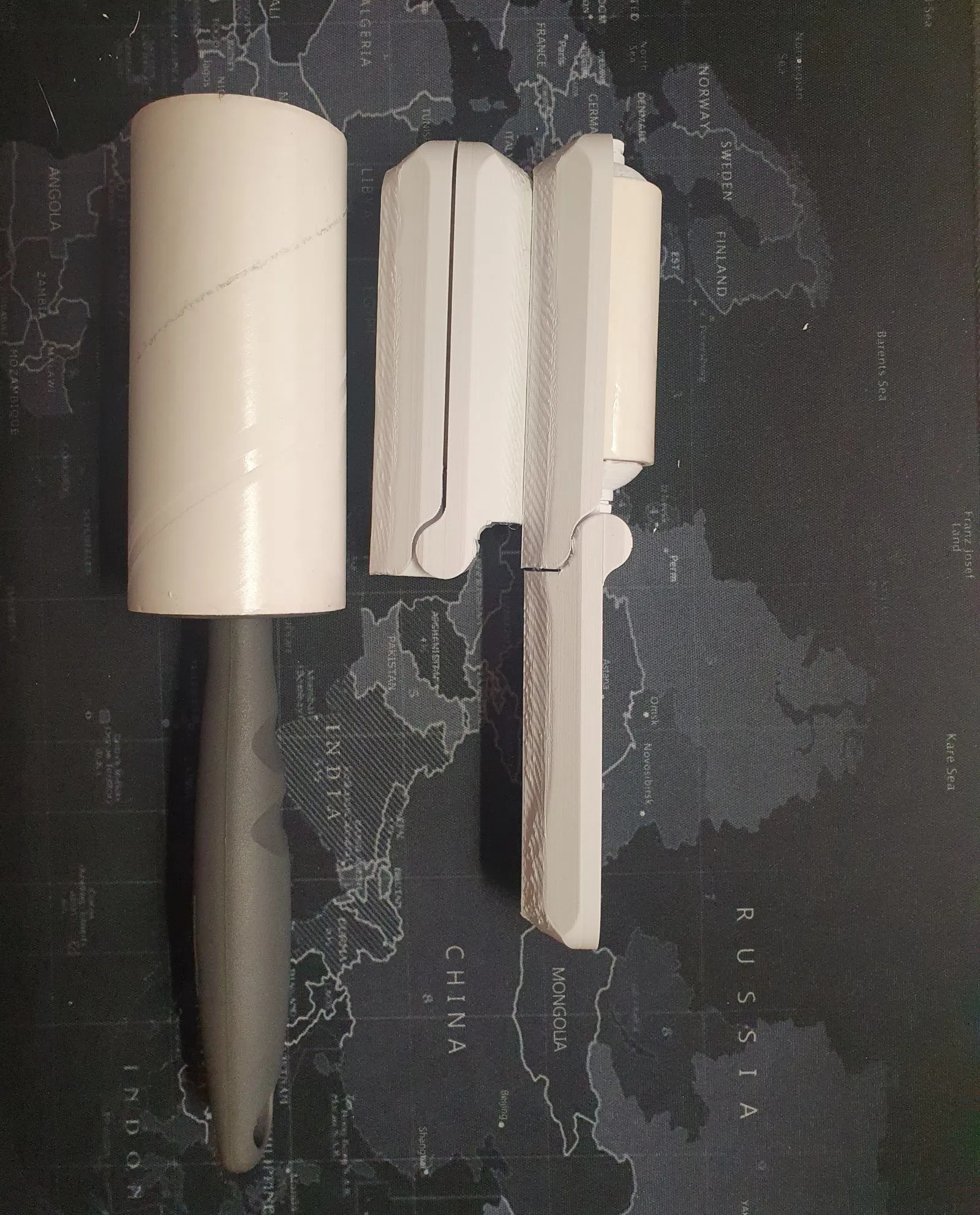 Đây là một con lăn bụi mini để mang theo. Khi đóng lại, con lăn hoàn toàn bị ẩn đi và khi mở ra, nắp chuyển thành tay cầm để cầm con lăn.