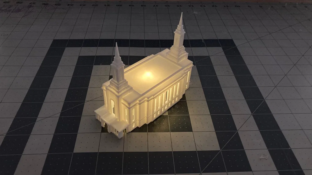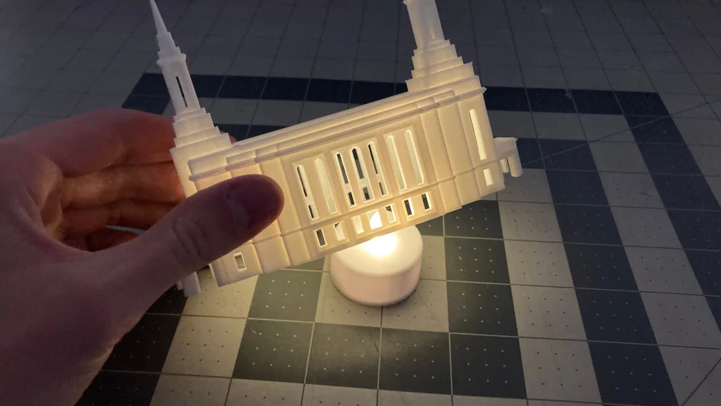 Mô hình thu nhỏ xinh xắn của Đền thờ Lindon, Utah. Thiết kế đặc biệt có khoang chứa đèn trà chạy bằng pin, phù hợp để trang trí không gian thêm ấm cúng. Đi kèm file 3mf hỗ trợ in ấn dễ dàng và file Blender để tùy chỉnh.