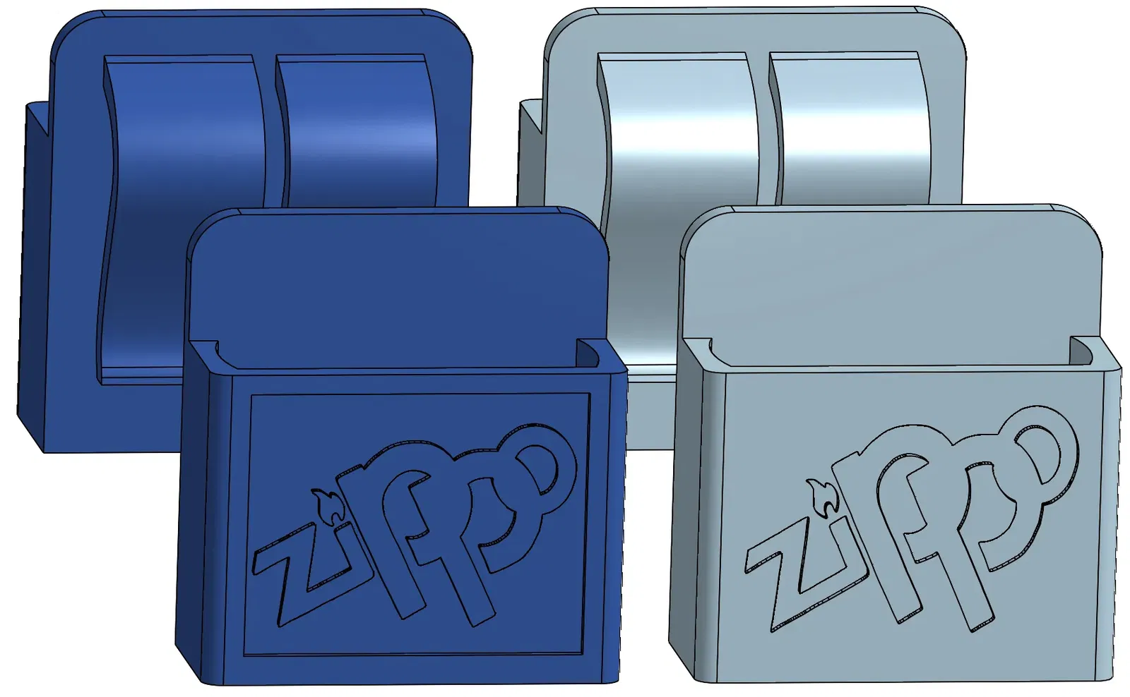 Giá đỡ nhẹ hơn Zippo với tùy chọn clip với 2 trang trí khác nhau. Hoặc bên trong hoặc xuất hiện các chữ cái 3D.