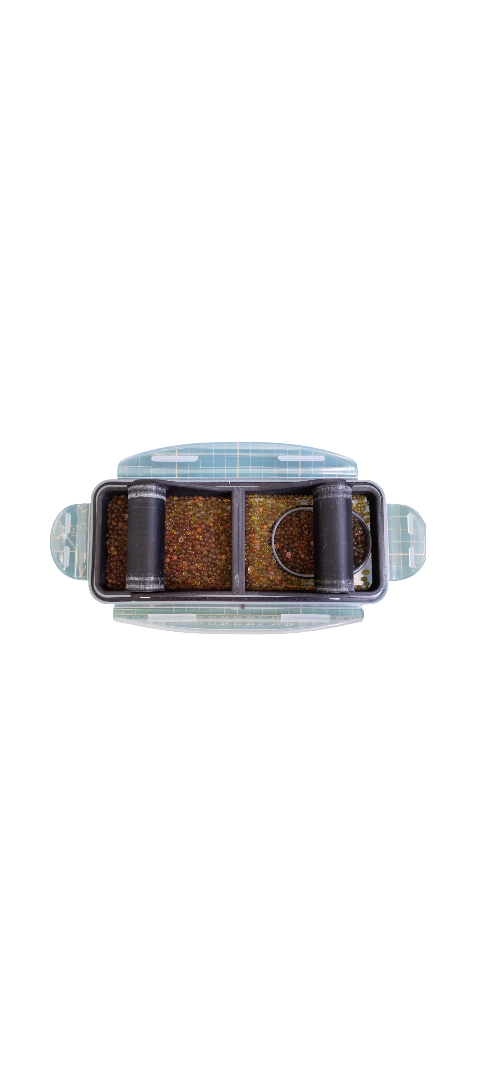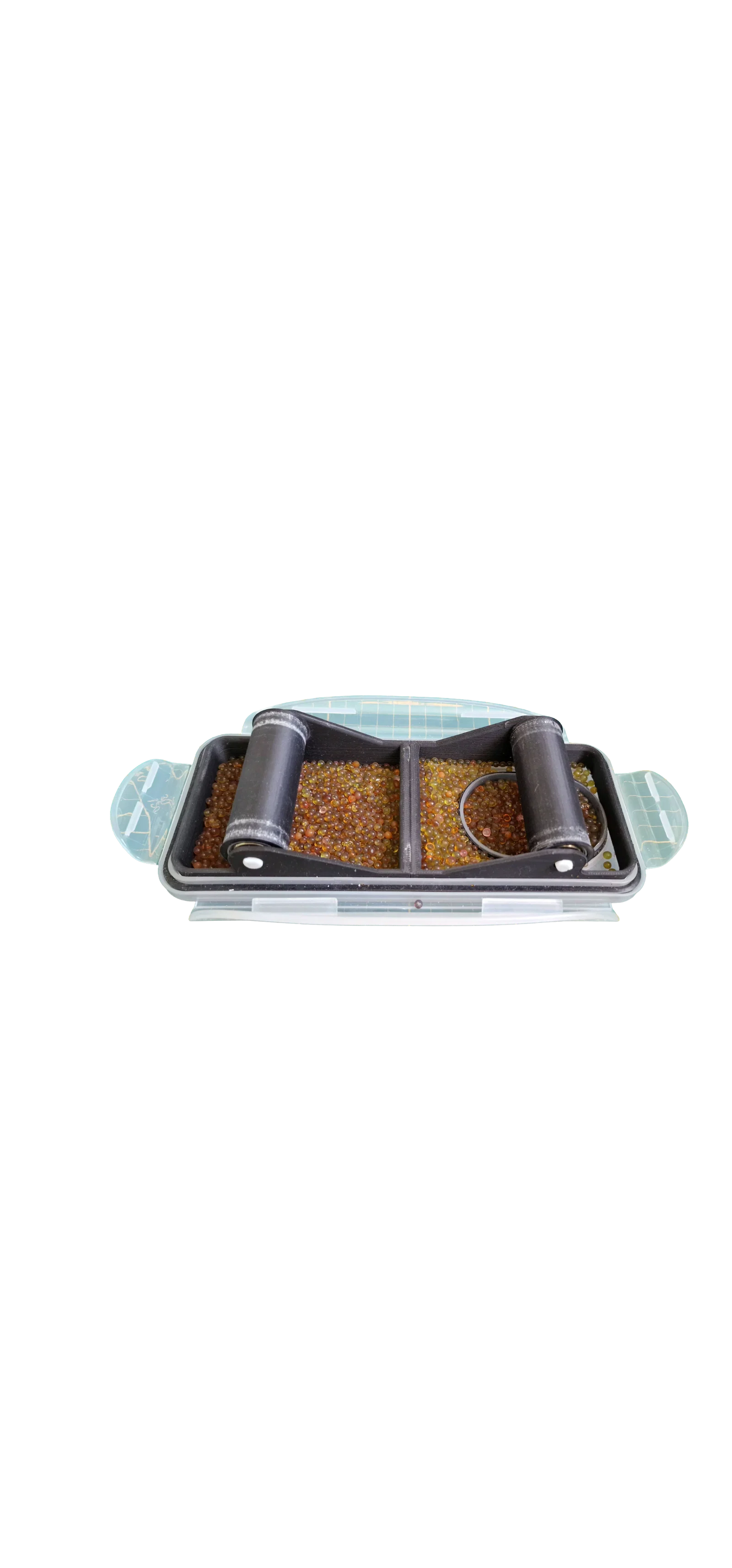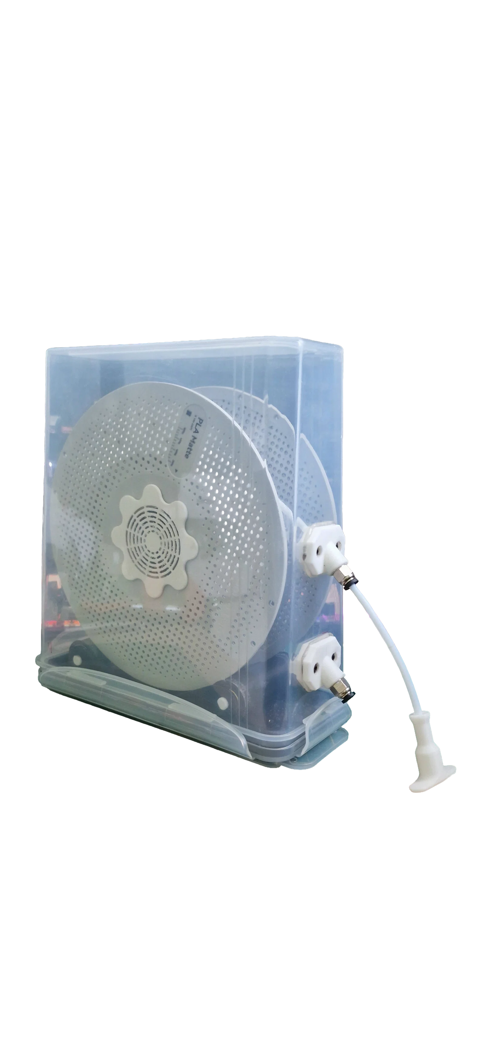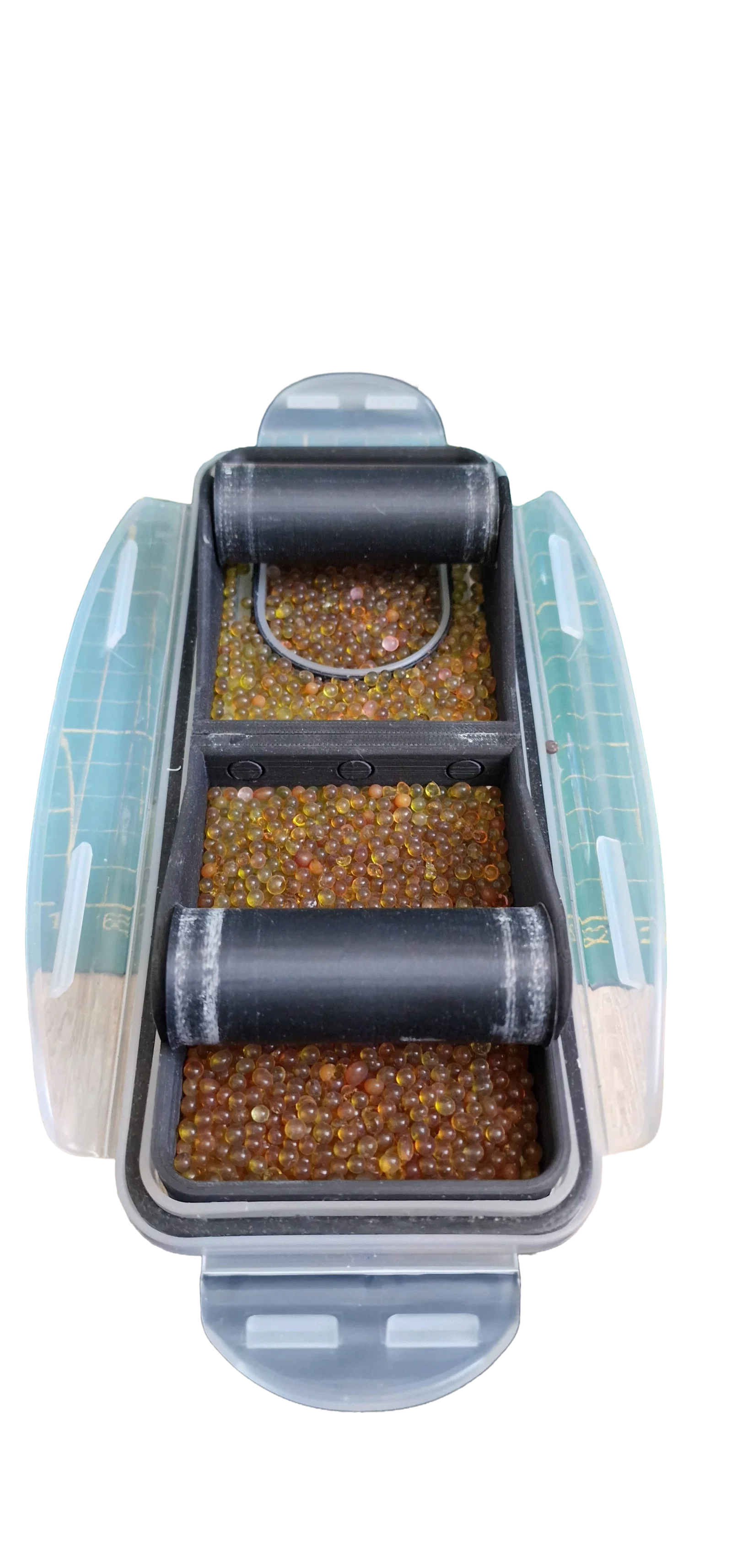 Đế con lăn được thiết kế để bạn có thể đặt hạt hút ẩm (silica gel) ở bên dưới (ngay trên nắp hộp). Mình đã để filament trong hộp này hơn 6 tháng mà độ ẩm vẫn luôn dưới 10%.
