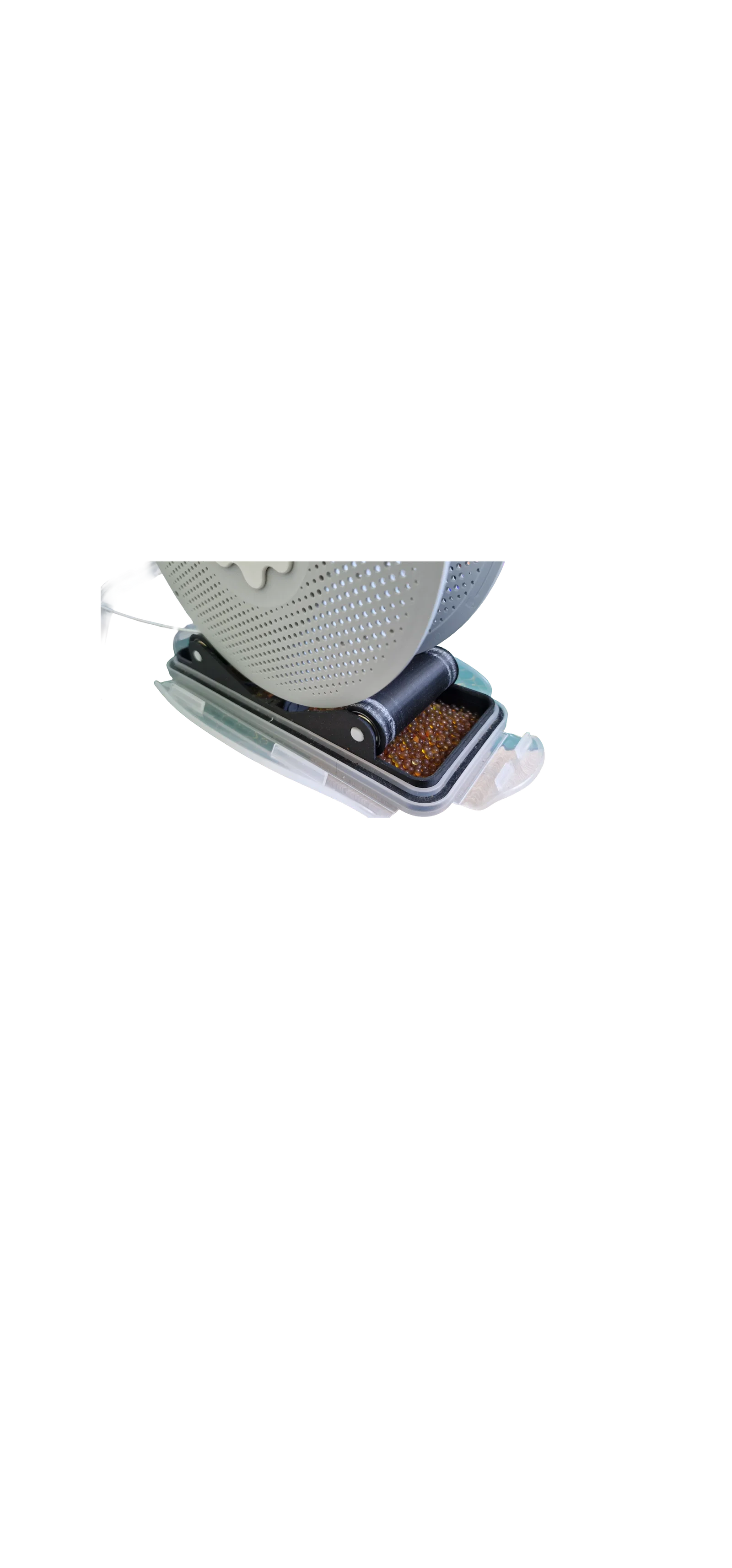 Hệ thống trục xoay cho cuộn filament tận dụng hộp ngũ cốc Amazon (https://www.amazon.nl/-/en/dp/B0CPP5B3V8). Thiết kế gồm 2 mảnh cho phần đế, 2 trục và con lăn để cuộn filament xoay. Bạn cần sử dụng vòng bi (https://www.amazon.nl/-/en/dp/B09PVDDBWF) loại 22mm với lõi 8mm thường dùng cho ván trượt. Hệ thống con lăn này được gắn vào nắp hộp vì diện tích bề mặt lớn hơn, giúp hộp khó bị đổ khi filament bị kéo (mình dùng chưa thấy bị đổ bao giờ).