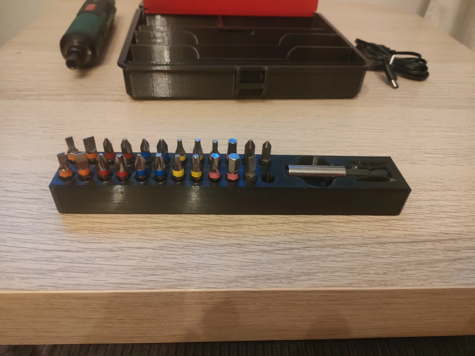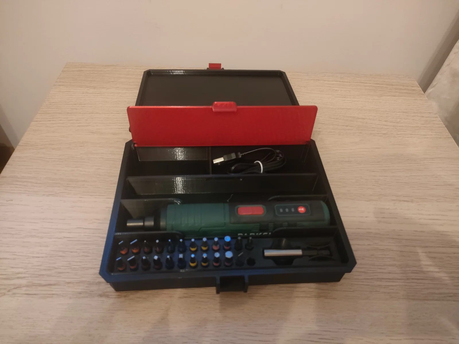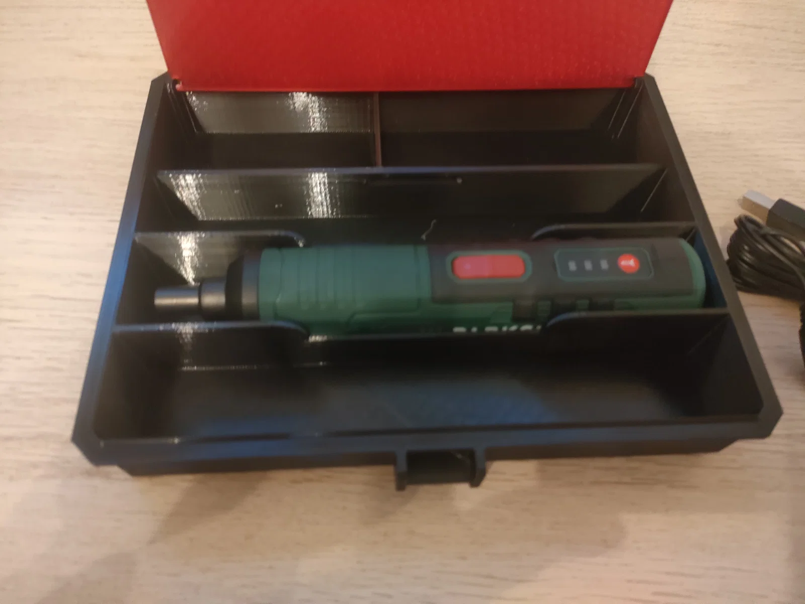 Hộp đựng chắc chắn cho Parkside PARS 4 A1. Đây là mẫu hộp đựng cho máy khoan pin Parkside PARS của mình. Bên trong hộp được thiết kế có thêm không gian để chứa bộ giữ mũi khoan và các phụ kiện đi kèm, được che chắn bởi một nắp đậy bên trong. Để lắp ráp, bạn cần chuẩn bị: 4 ốc vít M3x30 và 4 đai ốc M3. Phần nắp đậy bên trong không cần ốc vít hay chốt, bạn chỉ cần uốn nhẹ để lắp vào đúng vị trí là được. Thông số in: Chất liệu: PLA, PETG... Độ lấp đầy (Infill): 20-25%. Cần có hỗ trợ (Supports).