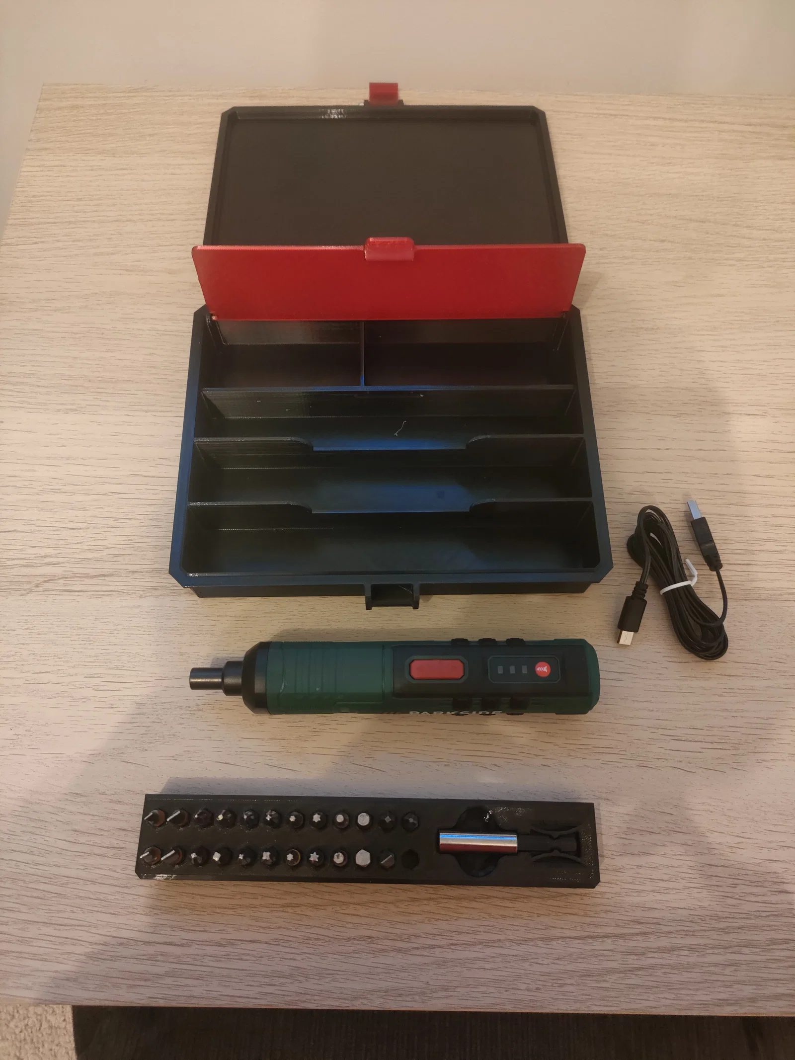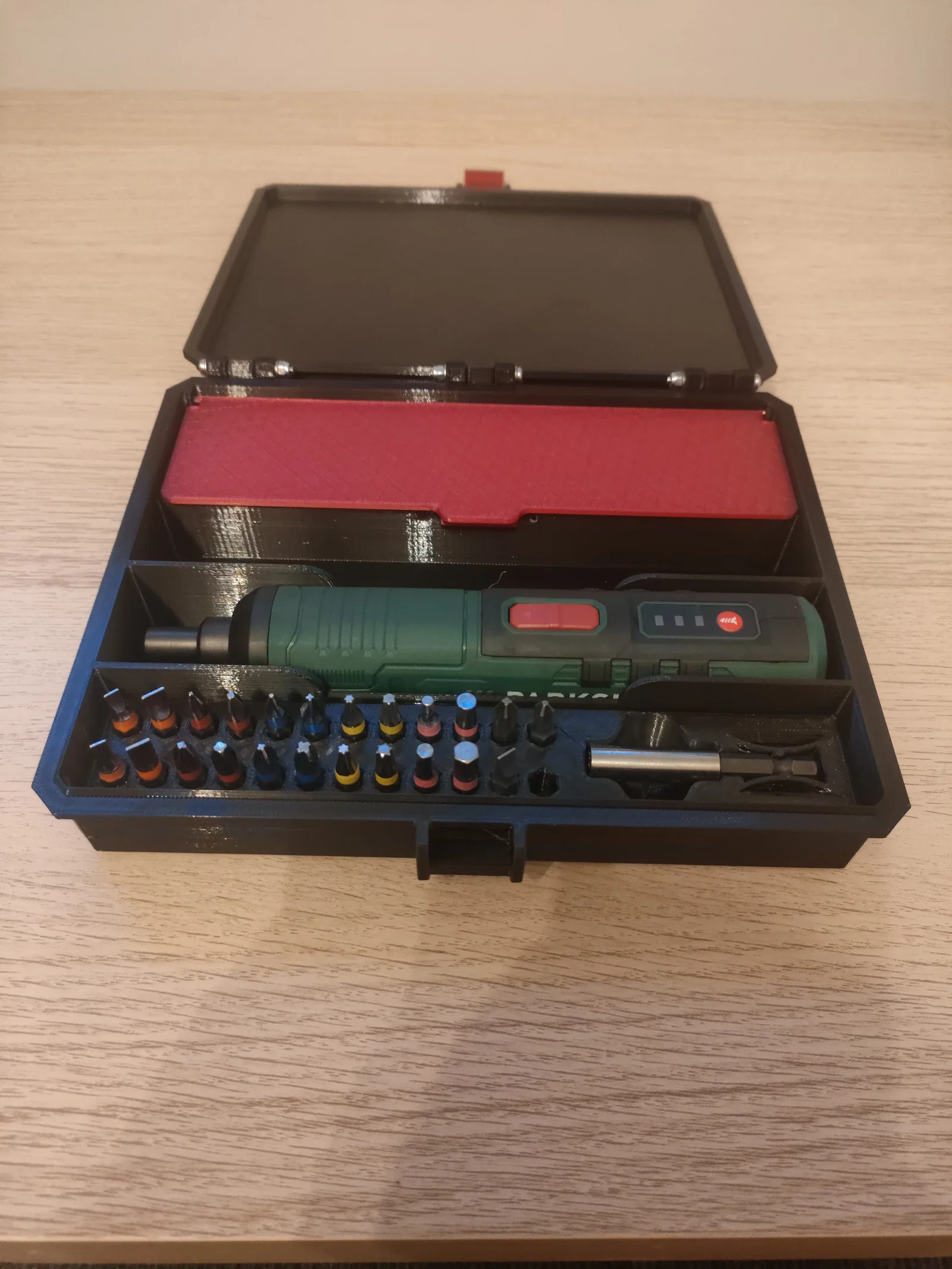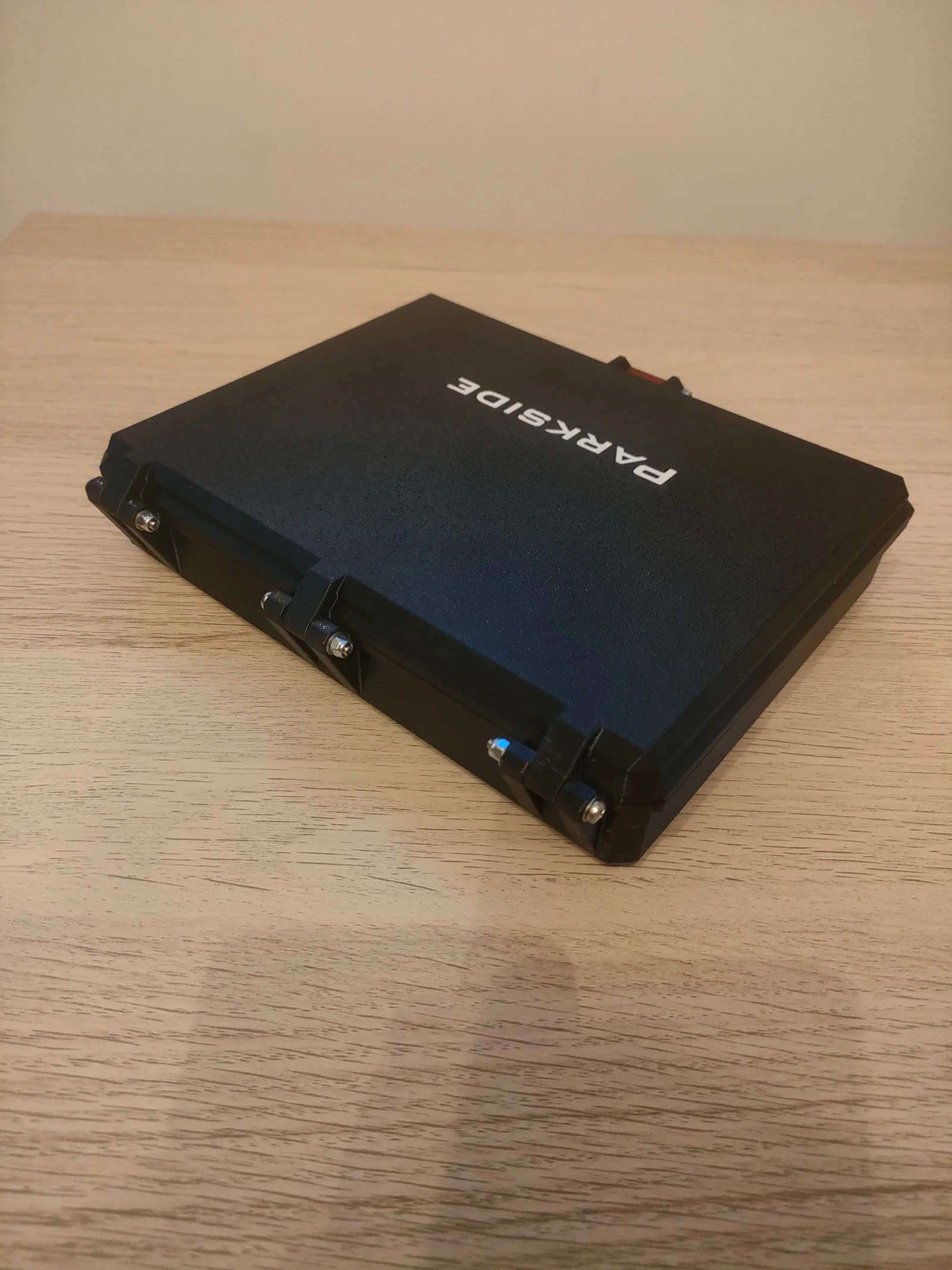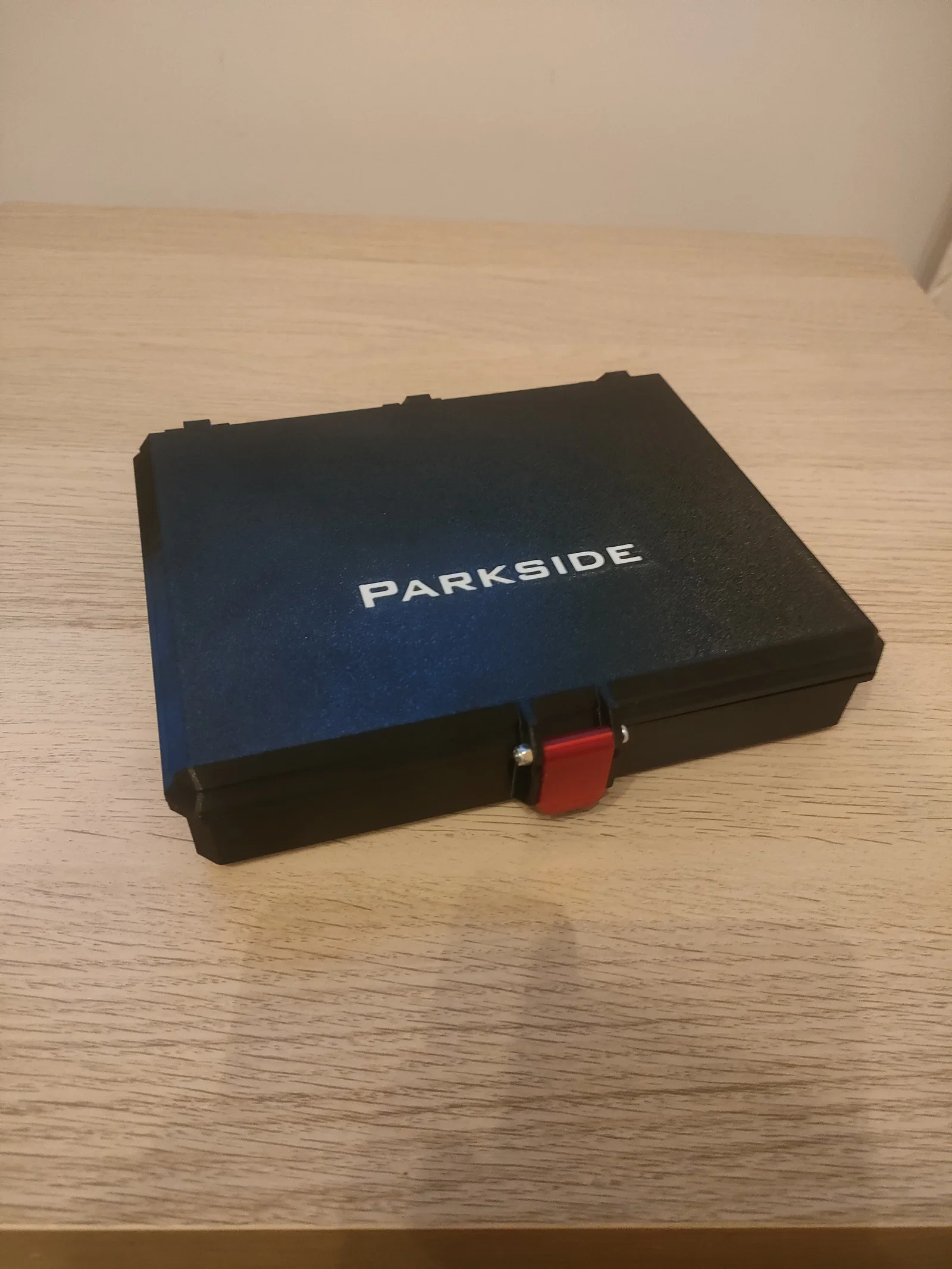 Mẫu hộp đựng chuyên dụng cho máy khoan pin Parkside PARS 4 A1. Thiết kế cứng cáp, có ngăn phụ chứa mũi khoan và phụ kiện tiện lợi. Sử dụng ốc vít M3 để lắp ráp, yêu cầu hỗ trợ khi in.