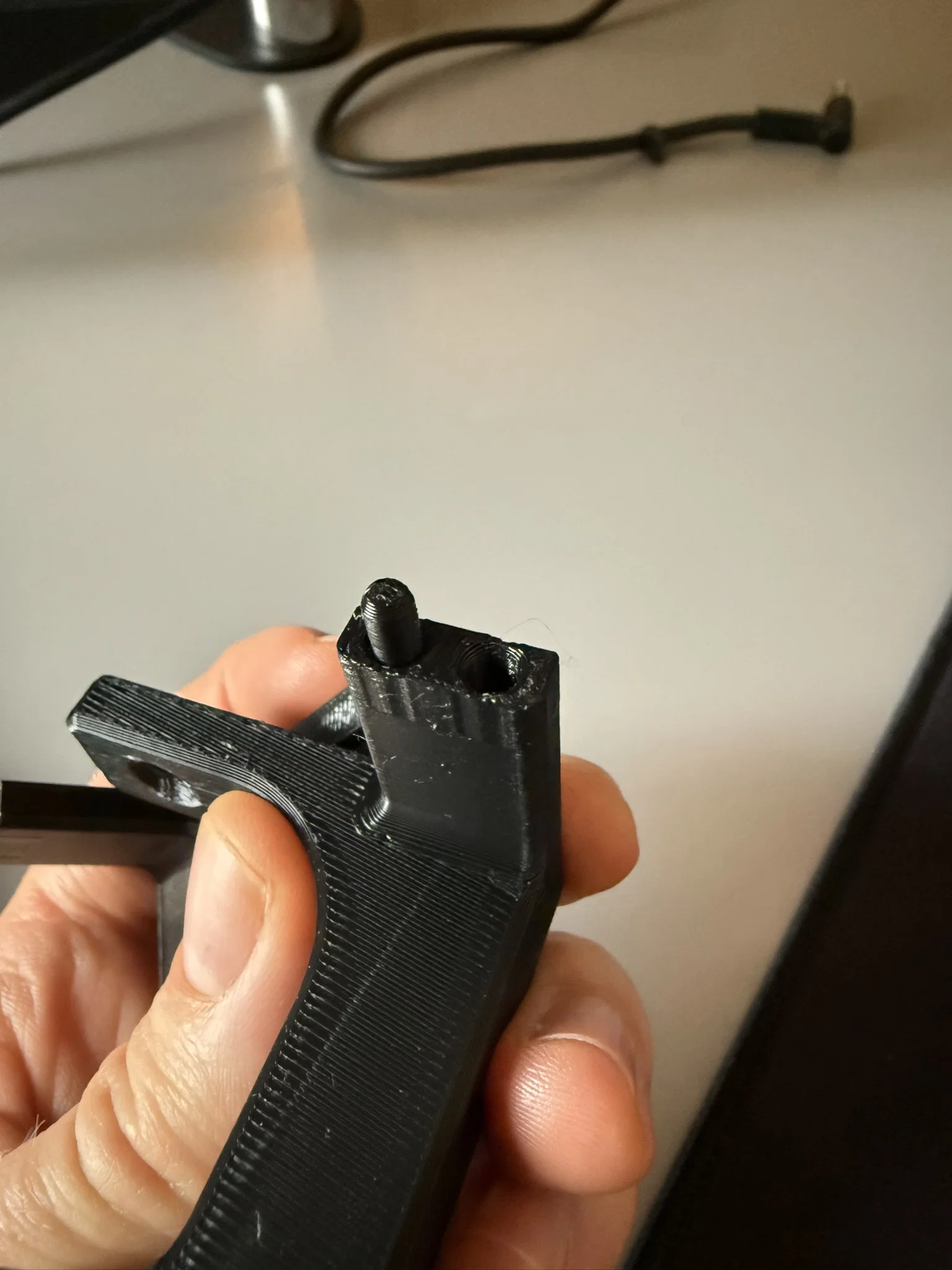 Mẫu móc treo này được chia thành hai phần riêng biệt và ghép nối bằng các chốt. Thiết kế này giúp tối ưu hóa hướng lớp in, đảm bảo độ bền chắc tối đa cho sản phẩm.