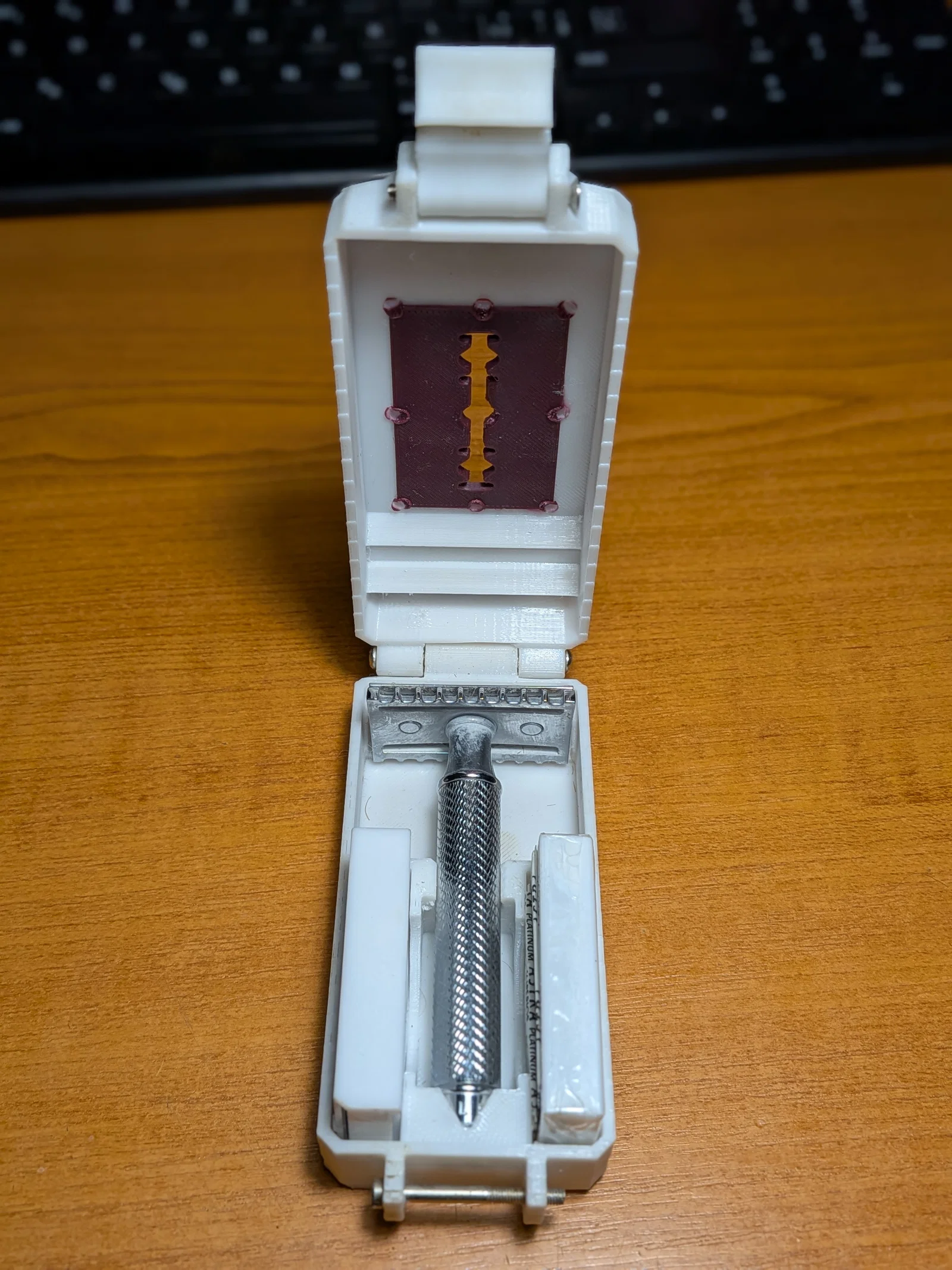 Bạn là người yêu thích phong cách cạo râu truyền thống với các loại dao cạo an toàn (safety razor) như Muhle R41? Việc mang theo dao cạo khi đi du lịch hay công tác thường gặp khó khăn vì lo lắng hư hỏng hoặc làm trầy xước các vật dụng khác trong túi xách. Hộp đựng in 3D này chính là giải pháp hoàn hảo giúp bạn bảo quản chiếc dao cạo yêu quý một cách an toàn, gọn gàng và tinh tế nhất.