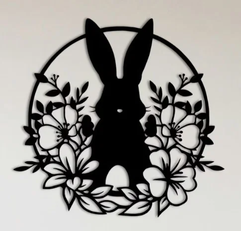 Sản phẩm này được thiết kế theo phong cách cắt laser hoặc hình bóng nghệ thuật (silhouette), tạo cảm giác thanh mảnh nhưng lại rất sang trọng khi treo lên tường. Hình ảnh chú thỏ được khắc họa một cách tối giản nhưng đầy nét tinh nghịch, kết hợp hoàn hảo với họa tiết hoa lá tạo nên một tổng thể hài hòa và tràn đầy sức sống. Bạn có thể dễ dàng treo nó ở phòng khách, phòng ngủ của bé hoặc dùng làm quà tặng handmade vô cùng ý nghĩa cho bạn bè và người thân.