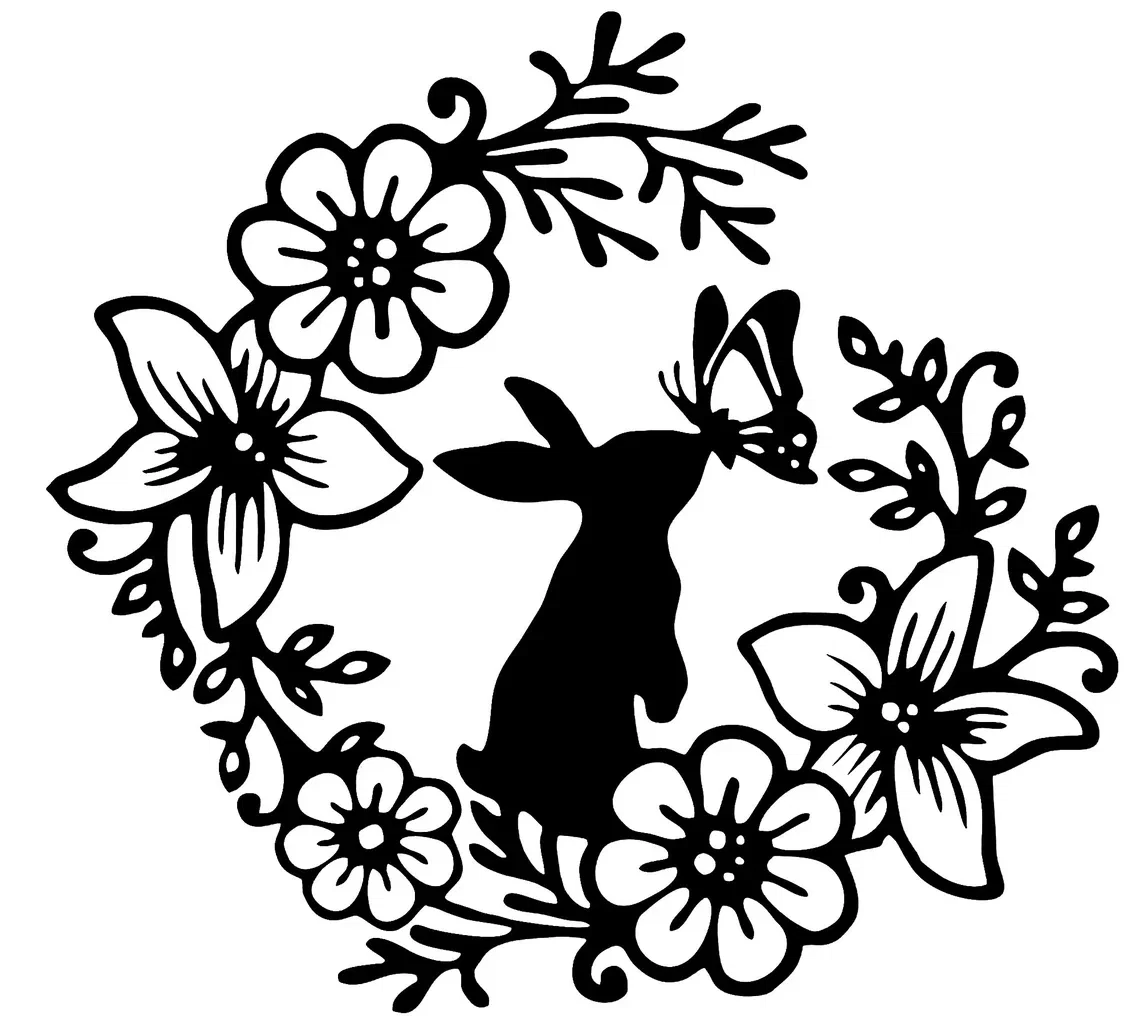 - Thiết kế tinh xảo: Hình ảnh chú thỏ Phục sinh (Easter bunny) được bao quanh bởi các chi tiết hoa và bướm tạo nên một tổng thể hài hòa và đầy tính nghệ thuật.