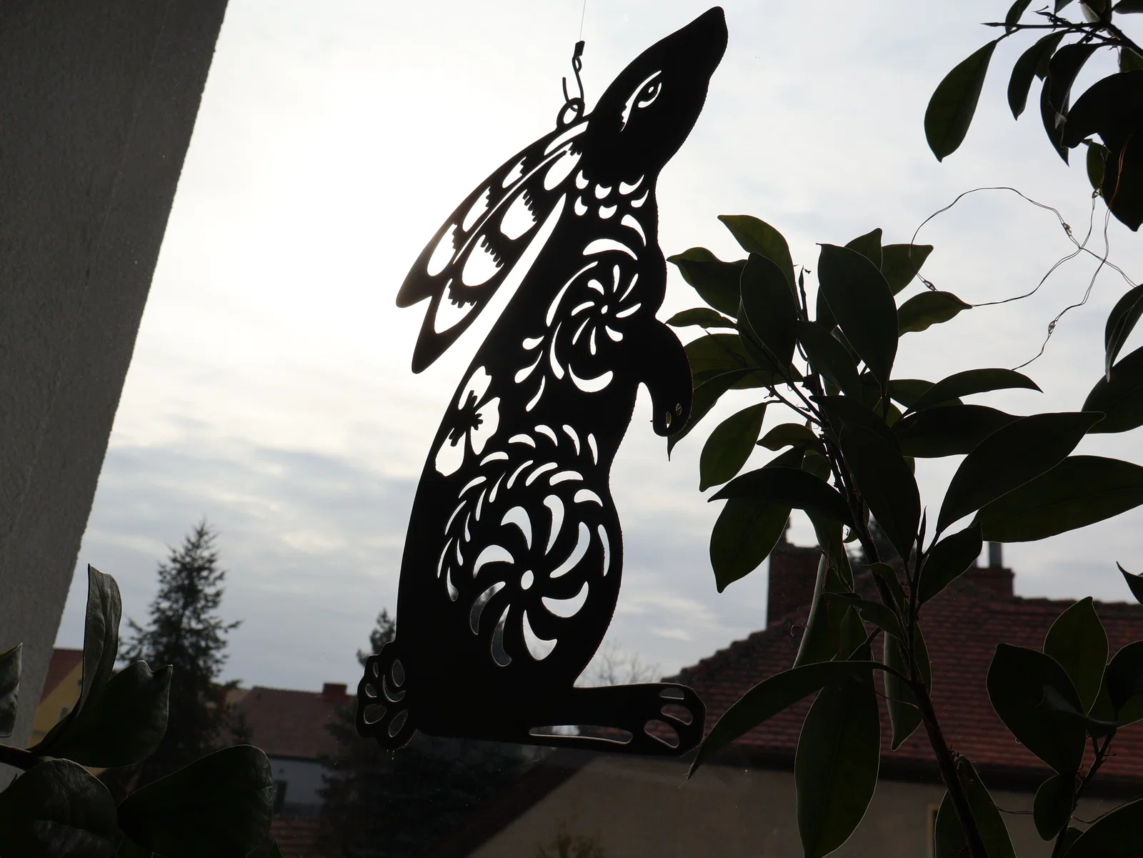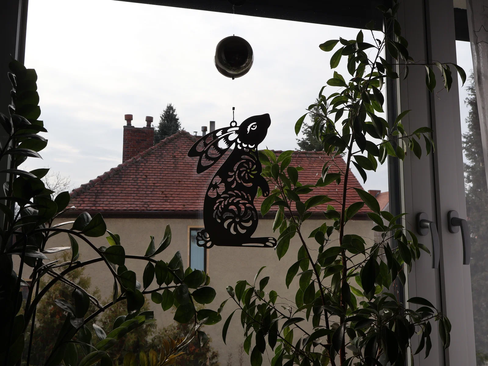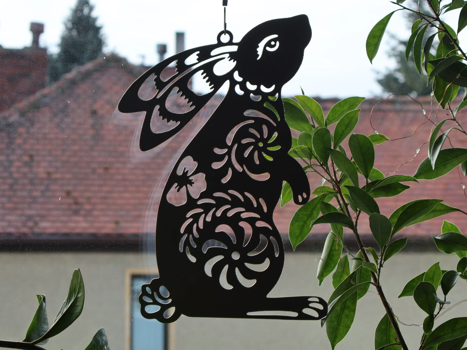 Tranh treo tường, trang trí cửa sổ hình chú thỏ Phục Sinh và hoa