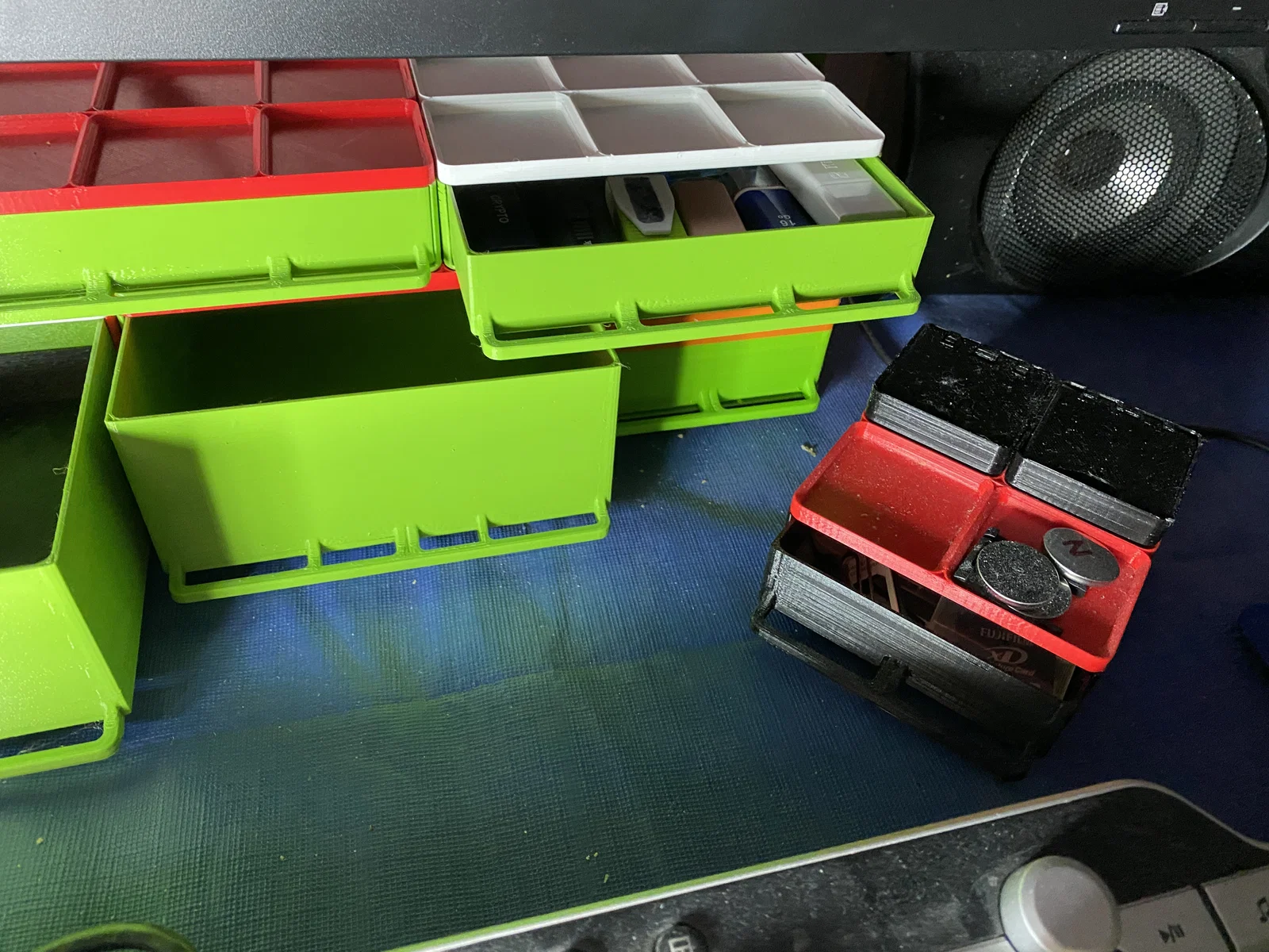 Các ngăn kéo này sử dụng hệ thống Gridfinity 2 hoặc 3 ô (2x2 / 2x3 / 3x3).