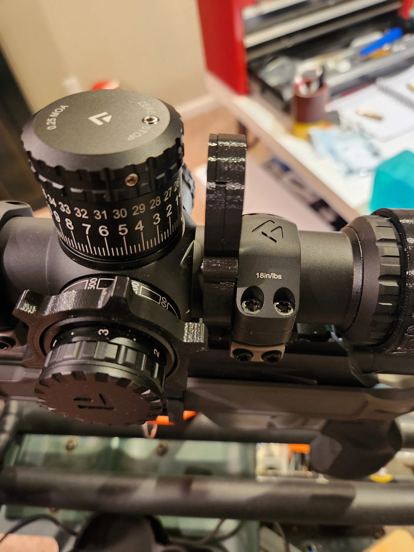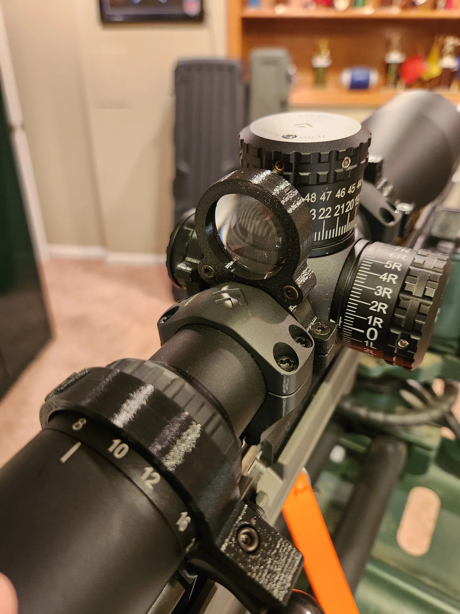 Kính lúp hỗ trợ gắn trực tiếp lên tháp chỉnh của các loại ống ngắm có đường kính thân 34mm. Thiết kế linh hoạt, dễ dàng lắp đặt bằng nhựa PETG bền bỉ. Sản phẩm cần thêm một số ốc vít M3 và thấu kính lồi 30mm để hoàn thiện.