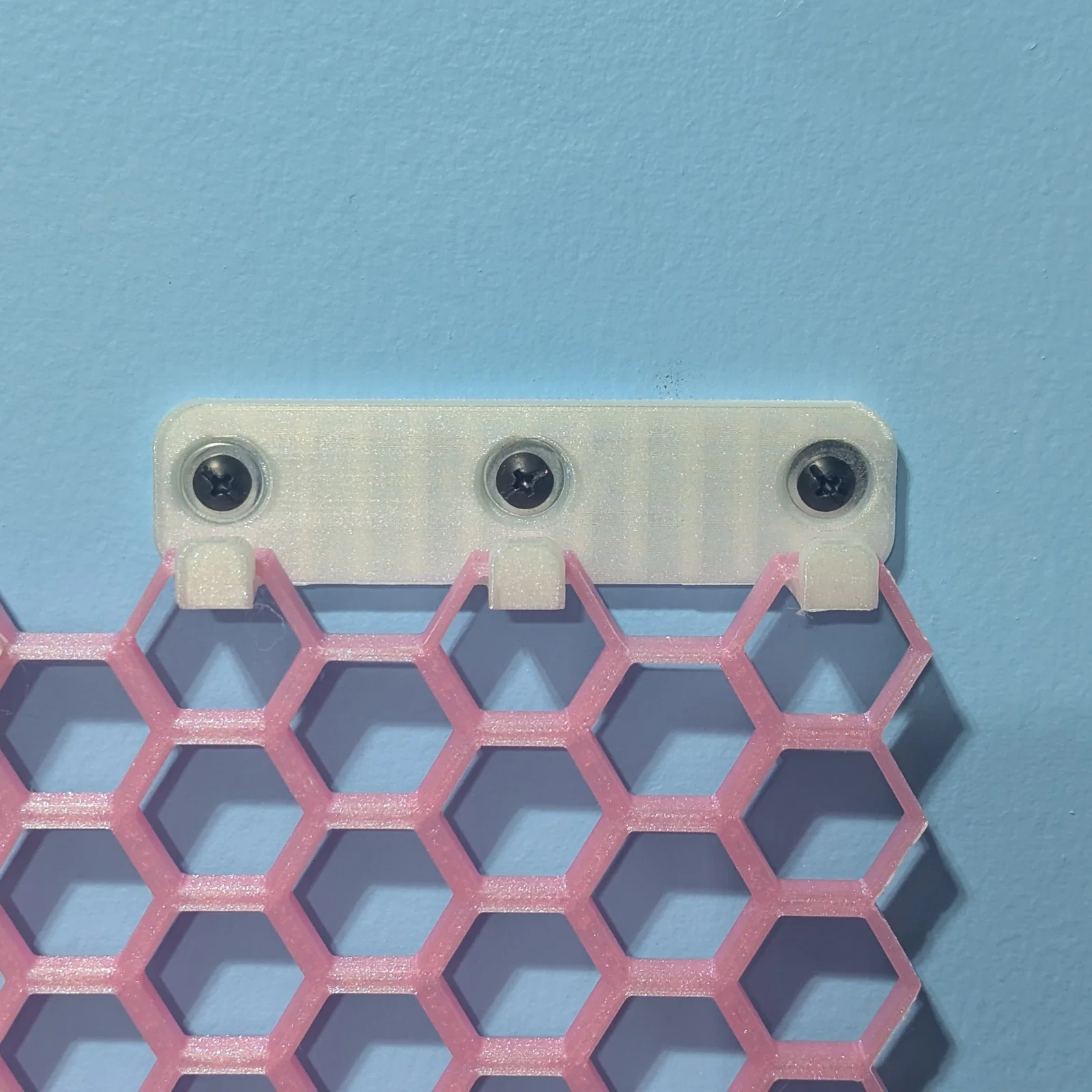 Mình thấy hệ thống HSW khá khó tùy biến khi gắn trực tiếp lên tường, nên mình đã thiết kế bộ móc treo chắc chắn này để treo các tấm grid lên tường một cách dễ dàng. Hiện tại có hai kích thước lỗ là 6mm và 8mm. Cả hai tùy chọn đều có phần lõm 12.5mm để bạn đặt vòng đệm (washer) vào bên trong. Nếu bạn có thể bắt vít vào khung gỗ (stud) trên tường, thì ba lỗ vít có thể hơi thừa, nên bạn cứ thoải mái sử dụng linh hoạt các lỗ vít tùy ý để cố định móc vào tường nhé. Mình cũng đã kèm theo nắp che để giấu đầu vít. Tùy vào loại nhựa bạn dùng (và sở thích cá nhân), mình có sẵn bản nắp che với độ hở (clearance) 0.1mm và 0.2mm. Nếu bạn cần dùng nhiều móc để cố định HSW, mình khuyên bạn nên in thử mỗi loại nắp một cái để kiểm tra độ khít trước khi in hàng loạt nhé.