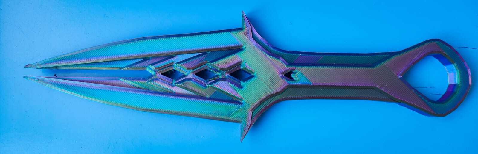 Sản phẩm này không chỉ thu hút bởi hình dáng độc đáo mà còn ở sự mạnh mẽ, cá tính mà nó mang lại. Khi được in 3D với nhựa có hiệu ứng đổi màu như hình ảnh minh họa, chiếc Kunai trông sẽ vô cùng sống động và chuyên nghiệp, giống như một món bảo vật bước ra từ thế giới ảo. Bạn có thể dễ dàng in ấn mô hình này tại nhà với chiếc máy in 3D quen thuộc của mình, đây là một dự án nhỏ nhưng mang lại kết quả cực kỳ mãn nhãn.
