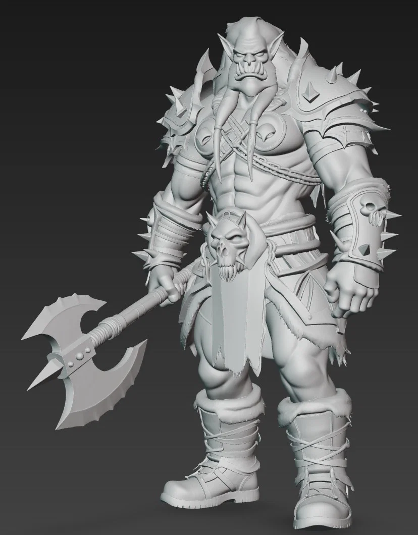 Nếu anh em đang tìm kiếm một mô hình nhân vật độc đáo để bổ sung vào bộ sưu tập game hoặc trang trí bàn làm việc, thì chiến binh Ork này chắc chắn là lựa chọn không thể bỏ qua. Đây là mô hình 3D được thiết kế đầy chi tiết, khắc họa hình ảnh một chiến binh Ork hầm hố, mang đậm phong cách dark fantasy mạnh mẽ. Từ cơ bắp cuồn cuộn, bộ giáp gai nhọn hoắt cho đến chiếc rìu chiến khổng lồ trên tay, mọi thứ đều toát lên vẻ dữ dằn và sẵn sàng cho những trận chiến ác liệt nhất.
