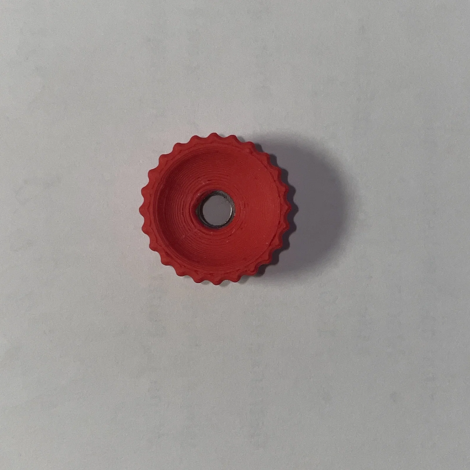 Đai ốc vặn tay (knurled nut) với ren trong M5 dùng cho giá đỡ tablet gắn ghi-đông của Tacx. (Tacx là nhà sản xuất thiết bị tập luyện tại nhà, hiện thuộc sở hữu của Garmin). Vì bị thất lạc phụ kiện này nên mình đã thiết kế lại dựa trên bản gốc bằng Fusion và in ra, có chừa lỗ để nhét con tán M5 vào. Lưu ý khi in kèm đai ốc: Để đảm bảo lớp nhựa đầu tiên phía trên con tán bám dính tốt, mình đã dán băng keo hai mặt lên bề mặt con tán (cắt theo hình dáng của nó). Nhờ đó mà phần lỗ (5.5 mm) được in ra rất sạch và chuẩn mà không gặp vấn đề gì. Chất liệu: PLA Matt. Cài đặt cho máy in Prusa Core trong Orca Slicer: Sử dụng profile PLA MATT Bambulab. Support: Không cần (đặt hướng model sao cho phần lõm ở phía trên). Tạm dừng (Pause): Cài đặt tạm dừng tại layer 32 (chiều cao 6.4 mm).