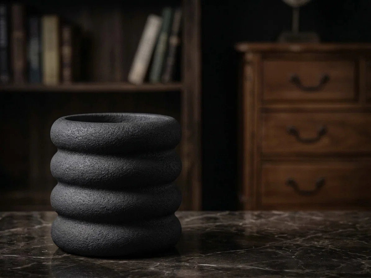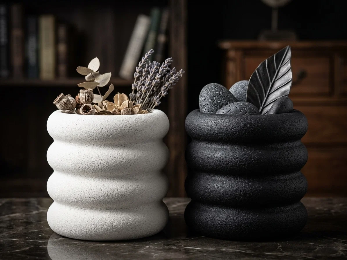 Sức hút đặc biệt của mẫu in này nằm ở bề mặt nhám sần ấn tượng. Bằng cách kích hoạt tính năng "Fuzzy Skin" trong phần mềm cắt lớp (slicer) khi in 3D, bạn sẽ tạo ra kết cấu bề mặt giống như đá tự nhiên hoặc gốm thủ công vô cùng sang trọng. Sự kết hợp giữa hình dáng uốn lượn và bề mặt sần khiến món đồ trông giống như được mua từ các cửa hàng trang trí nội thất cao cấp. Đây chắc chắn là điểm nhấn thú vị cho căn phòng của bạn.