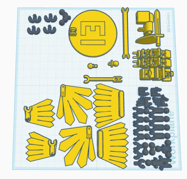 - Tùy chỉnh màu sắc: Bạn có thể in bằng hai màu nhựa khác nhau (như hình minh họa là vàng và xám) để tạo độ tương phản nổi bật cho cánh và vũ khí.