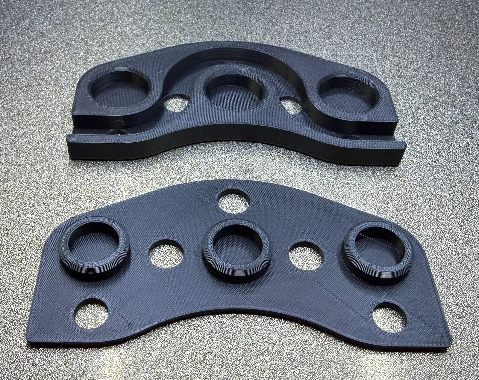 Mình in bằng nhựa PLA Basic rẻ tiền màu đen của Inland và thấy rất ổn, mình nghĩ bạn có thể dùng bất kỳ loại vật liệu nào có sẵn. Chắc chắn nhựa PETG sẽ bền hơn, nhưng PLA của mình vẫn dùng tốt sau lần đầu tiên mà gần như không bị mòn. Mình dùng cài đặt tiêu chuẩn: layer height 0.2mm, infill 15% và không cần support.