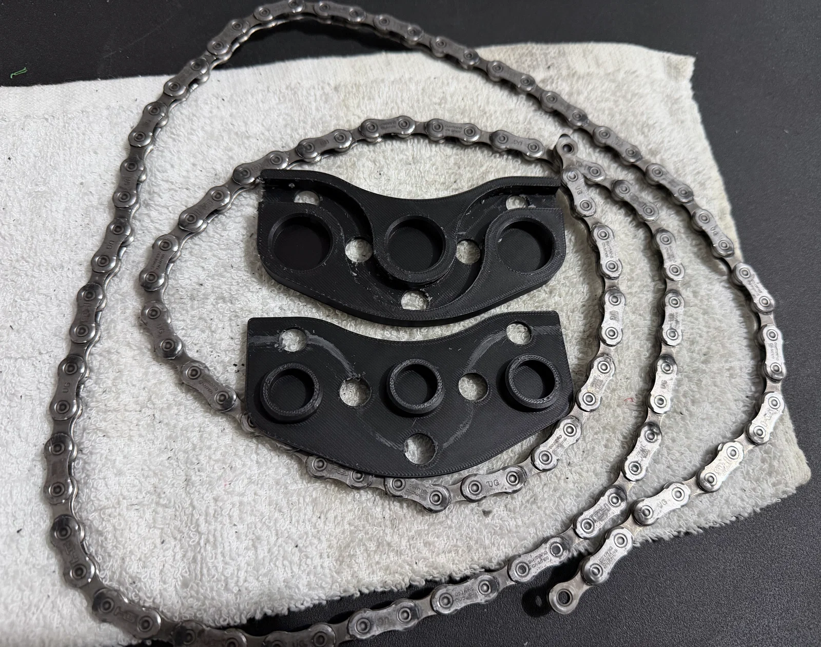 Mục tiêu là tạo ra một thiết bị in nhanh, không cần support, không có bộ phận chuyển động hay linh kiện rời (như vòng bi). Mình cũng muốn nó cầm nắm thoải mái và bền bỉ để có thể quăng chung vào hộp đồ nghề. Mình chọn bán kính uốn cong khá an toàn, đủ để lắc qua lắc lại các mắt sên mà không tạo ra quá nhiều ma sát.