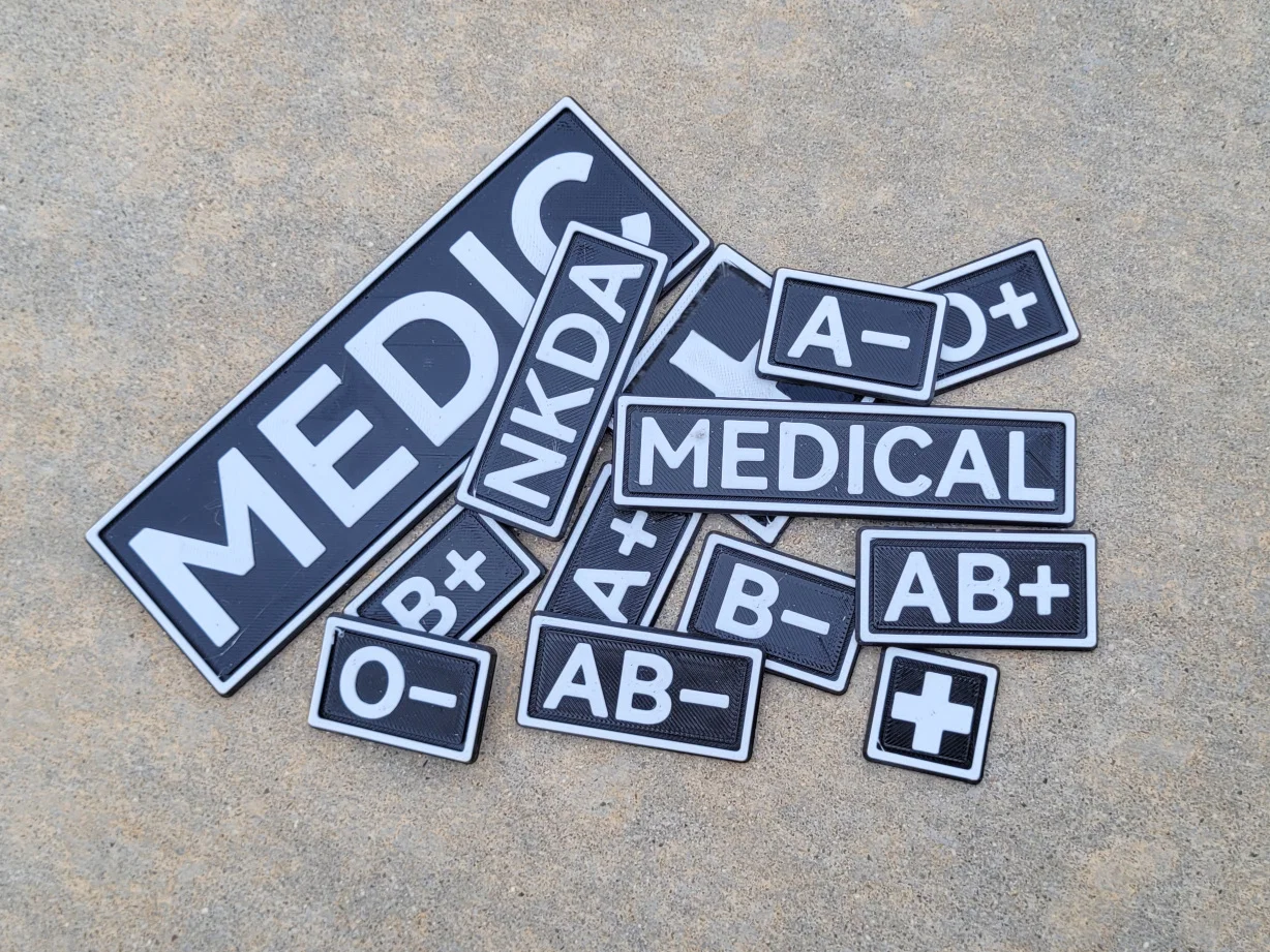 Bộ miếng dán TPU y tế chuyên dụng dành cho đồ tactical. Thiết kế dễ in, hỗ trợ đổi màu thủ công mà không cần máy in đa hệ màu. Bao gồm nhiều loại nhãn y tế thông dụng, rất phù hợp để gắn lên đồ dùng cá nhân bằng Velcro.