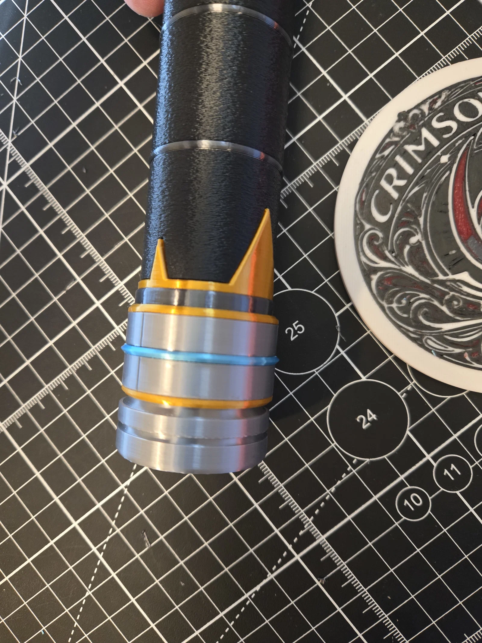 Mình quyết định chơi lớn một chuyến và làm hẳn một cây kiếm hai tay. Mẫu này dài 350mm, vẫn in tốt trên các dòng máy mini. Nếu anh em nào in không được thì báo mình để mình chỉnh lại profile nhé. Thiết kế này có hai thanh căn chỉnh, một trên và một dưới. Mình khuyên các bạn nên gắn các chi tiết trang trí nhọn vào phần tay cầm trước khi lắp vào thanh căn chỉnh nha. File 3mf đã được phân tách sẵn theo màu và các thông số cài đặt cũng đã tối ưu hết rồi. Mẫu này không cần dùng AMS đâu. Chúc anh em in vui vẻ!