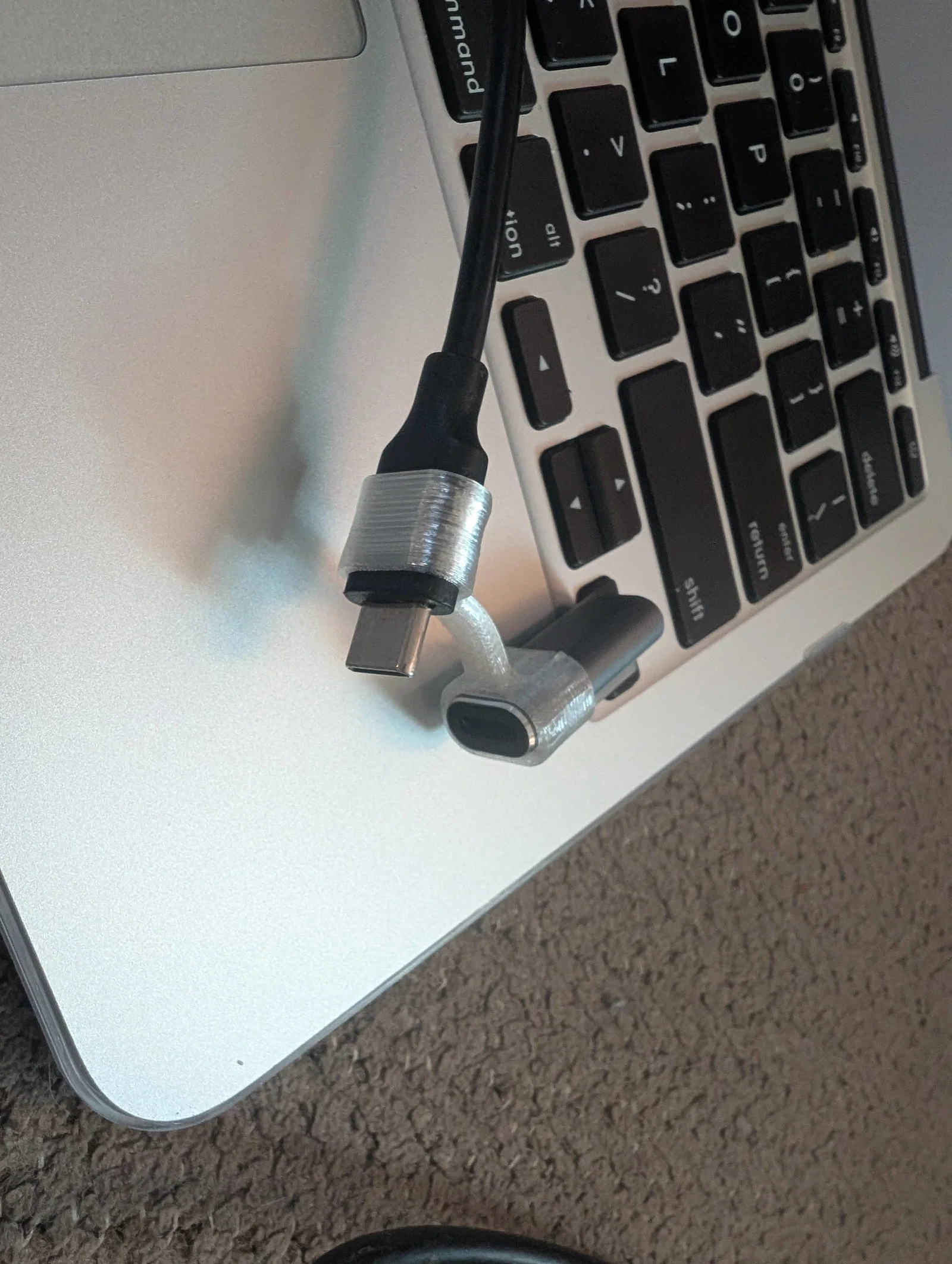 Mình đã thiết kế cái khớp nối linh hoạt đơn giản này để giữ cho đầu chuyển đổi USB-C sang MagSafe 2 luôn nằm gọn trên dây cáp USB-C.