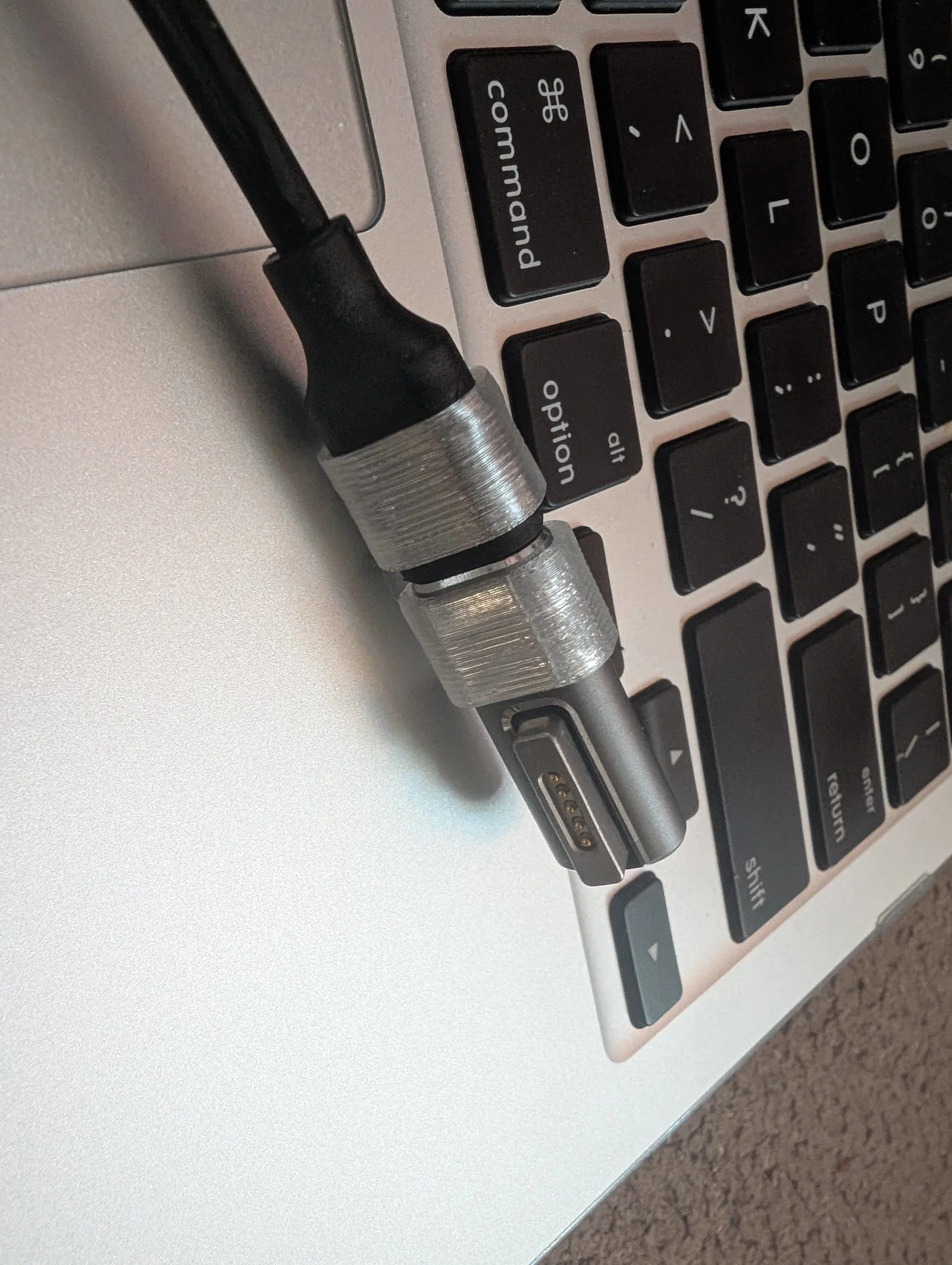 Một khớp nối linh hoạt, đơn giản giúp bạn cố định đầu chuyển đổi USB-C sang MagSafe 2 gắn liền với cáp sạc. Bạn nên sử dụng nhựa TPU để in để đạt độ dẻo dai cần thiết. Thiết kế có vòng giữ chắc chắn cho adapter.