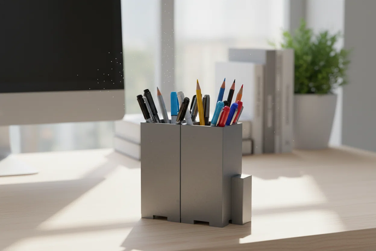 Bạn đang cảm thấy bàn làm việc quá bừa bộn với bút viết nằm vương vãi khắp nơi? Hãy thử ngay mẫu khay cắm bút thông minh có thể ghép nối (Connectable Pen Holder) này. Đây là giải pháp in 3D cực kỳ tiện lợi, cho phép bạn in nhiều module riêng lẻ và kết nối chúng lại thành một bộ sắp xếp chuyên nghiệp. Với thiết kế tối giản, vững chãi và dễ dàng tùy chỉnh, bạn có thể tự tay mở rộng không gian lưu trữ cho riêng mình. Đây là món phụ kiện bàn làm việc không thể thiếu cho các bạn học sinh, sinh viên và nhân viên văn phòng yêu thích sự ngăn nắp, khoa học. Chỉ cần sử dụng vật liệu PLA thông dụng, bạn đã có thể sở hữu một bộ khay bút vô cùng bền bỉ và tinh tế.