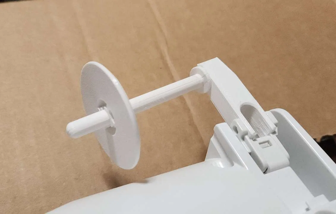 Mô hình thay thế cho tay đỡ, chốt và bộ giữ ống chỉ phía sau của máy may Brother, mã linh kiện gốc XE6425101. Hướng dẫn chi tiết cách in bằng nhựa PETG để đảm bảo độ bền và thẩm mỹ tốt nhất cho máy may của bạn.