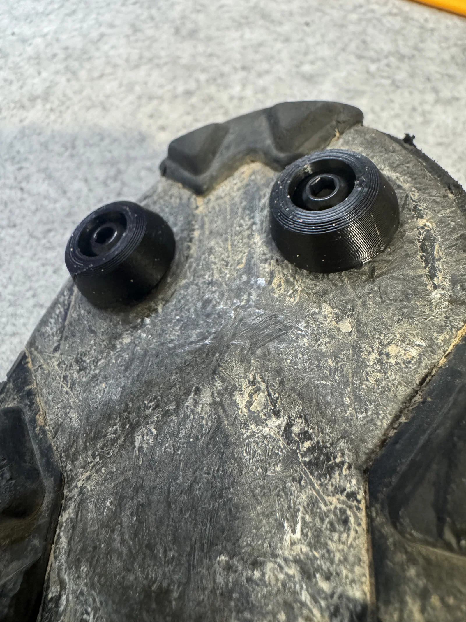 Mình tìm thấy bản gốc của @Dabal_640841 nhưng lại không có sẵn ốc vít đầu chìm (sockethead) với kích thước được gợi ý. Thay vào đó, mình có sẵn khá nhiều ốc M5x10 BHCS (đầu nút) dư ra từ khi ráp máy Voron. Mình đã thiết kế lại để khớp với đầu ốc rộng hơn và chiều dài 10mm cho tương thích với độ sâu bắt ốc gốc trên giày.