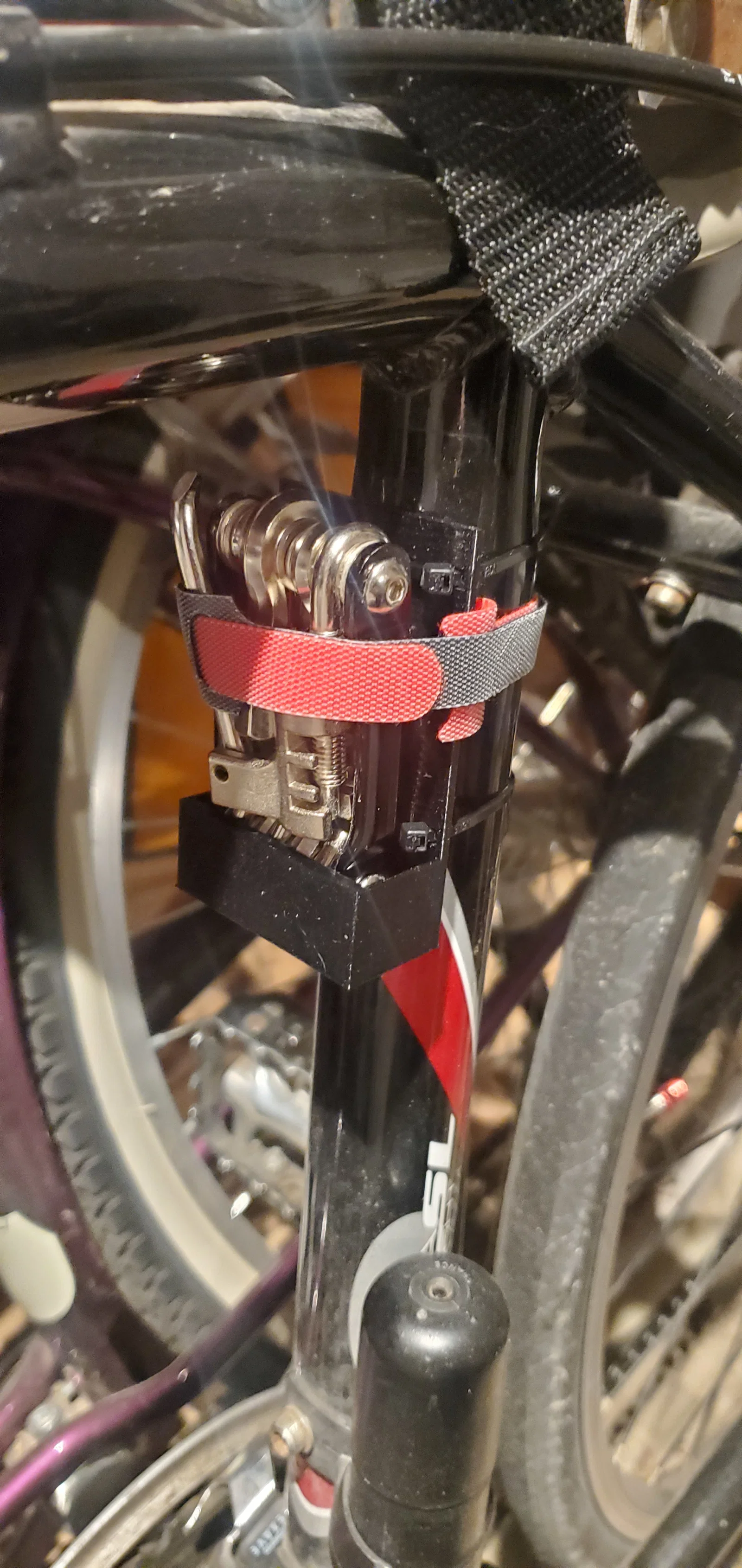 • Lắp đặt: Hãy đảm bảo dây rút nhựa được siết đủ chặt vào khung xe nhưng không làm biến dạng nhựa in. Sử dụng dây đai dán chất lượng tốt để đảm bảo bộ multitool không bị lỏng lẻo.