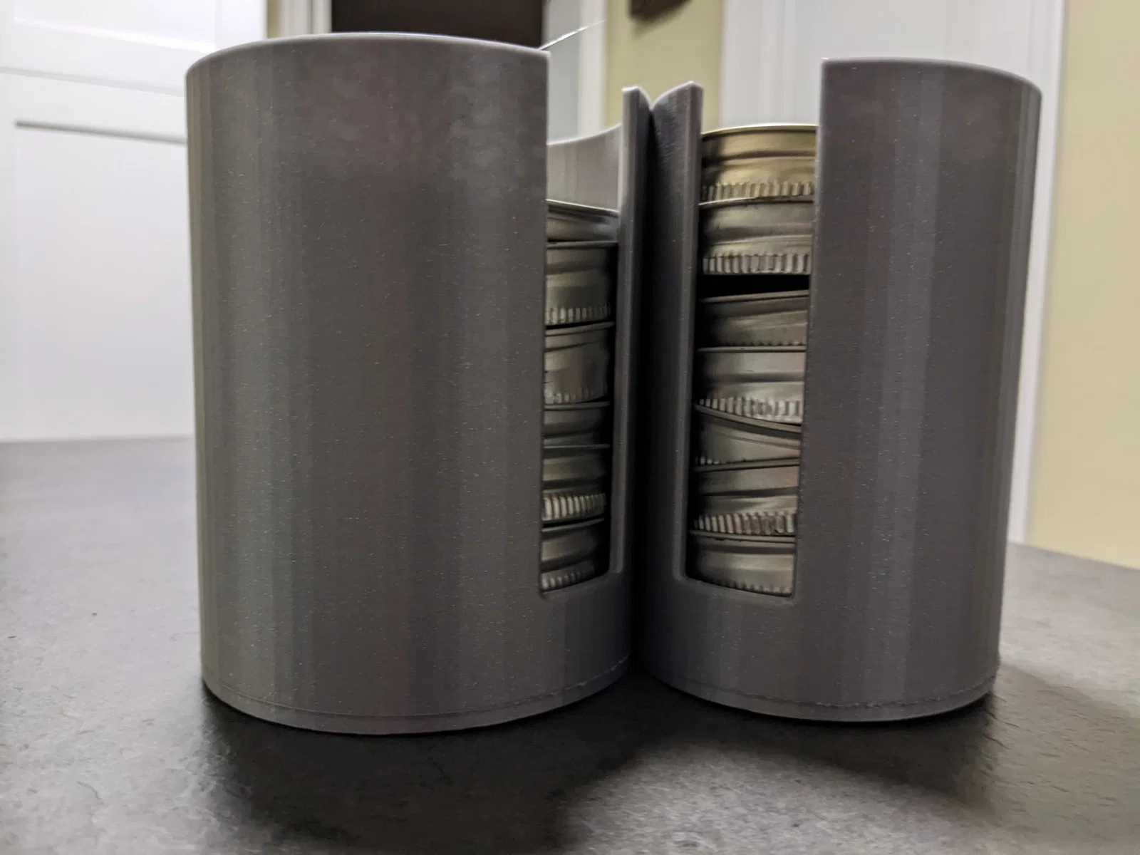 Với thiết kế 2x2, khay có thể chứa được nhiều loại nắp hũ khác nhau, từ kích thước tiêu chuẩn cho đến các loại nắp nhỏ hơn. Hơn thế nữa, nếu nhu cầu sử dụng của bạn ít hơn, bạn hoàn toàn có thể tùy chỉnh in phiên bản 1x1 (half-size) để phù hợp với không gian lưu trữ hiện có. Việc sắp xếp nắp hũ theo cách này không chỉ giúp bạn tìm kiếm món đồ mình cần một cách nhanh chóng mà còn giúp bảo vệ nắp hũ khỏi trầy xước hoặc bị móp méo trong quá trình cất giữ.