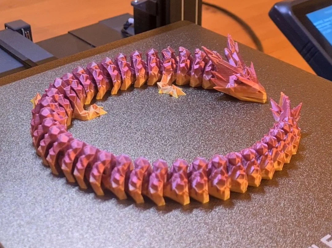 Đây là bản remix hoàn thiện của mô hình rồng pha lê, đã khắc phục lỗi hai khớp cổ bị dính liền ở bản gốc. Mô hình có khớp nối linh hoạt, dễ in, không cần hỗ trợ và trông cực kỳ bắt mắt khi sử dụng nhựa in Rainbow PLA.
