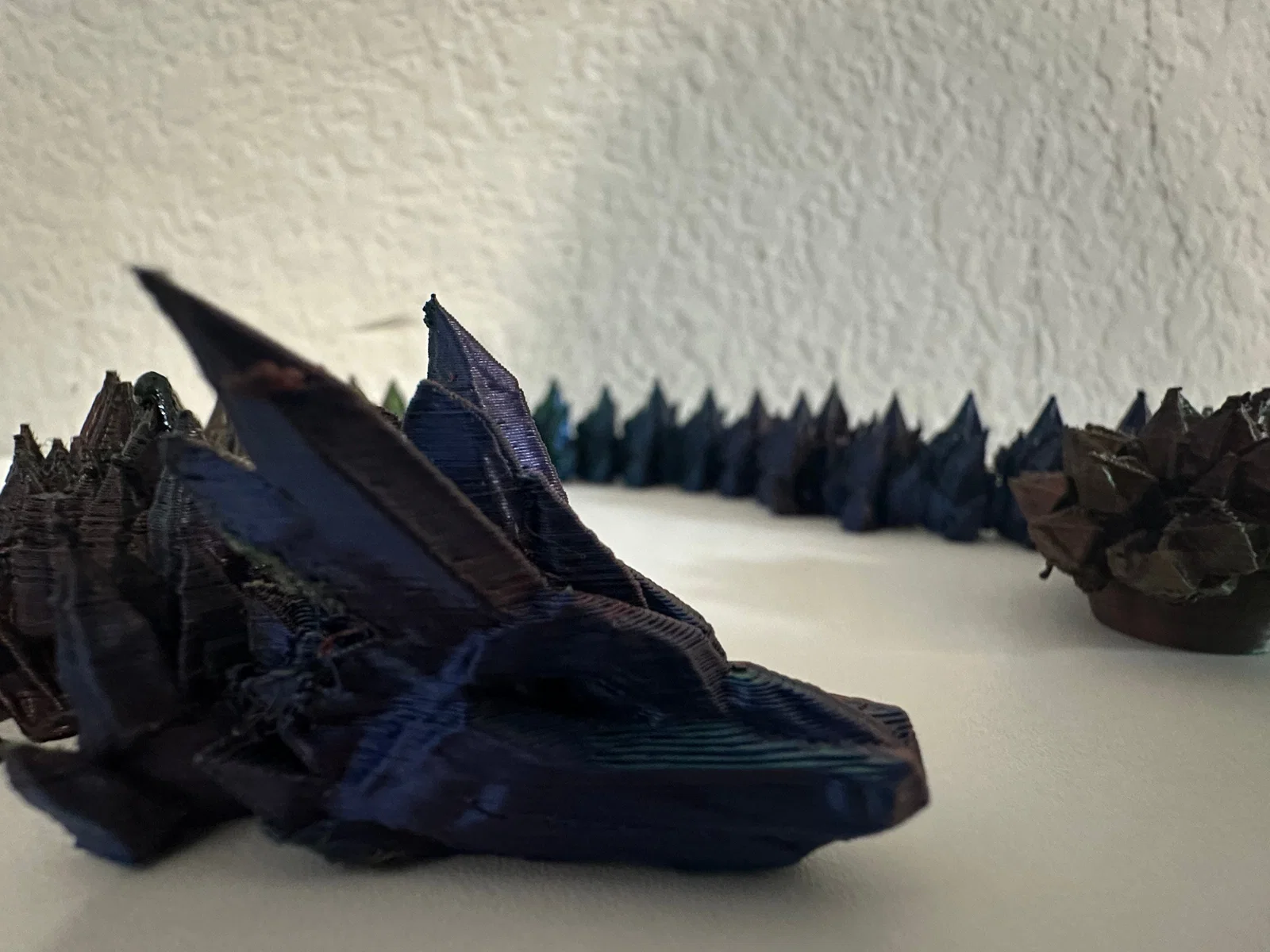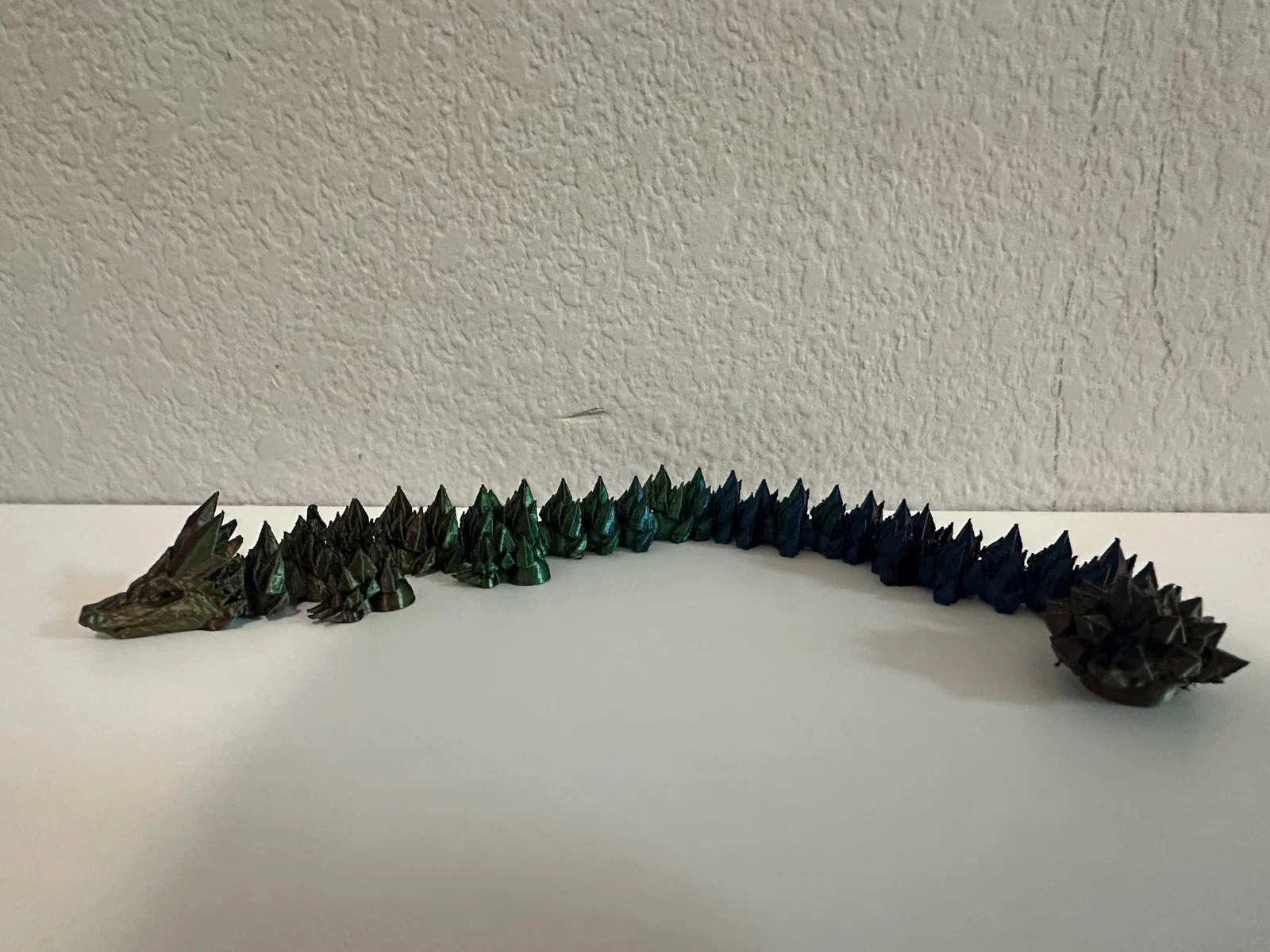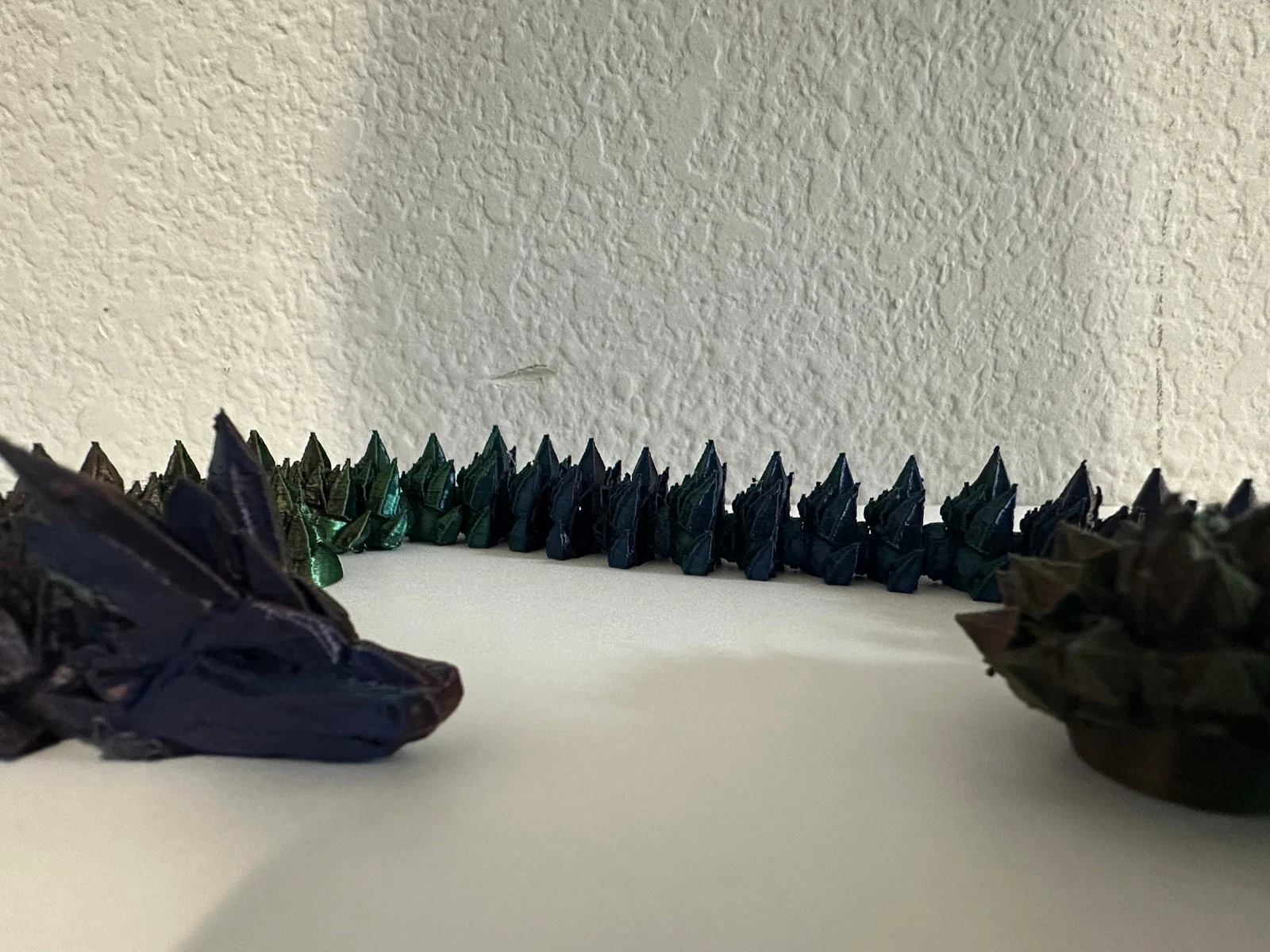 Sử dụng các loại nhựa như PLA đổi màu (gradient) hoặc nhựa có hiệu ứng óng ánh (silk) sẽ giúp làm nổi bật các góc cạnh pha lê trên thân rồng, tạo nên vẻ ngoài lấp lánh cực kỳ bắt mắt. Bạn nên in với tốc độ vừa phải để các khớp nối được hoàn thiện sắc nét nhất, đảm bảo chuyển động mượt mà và bền bỉ theo thời gian.